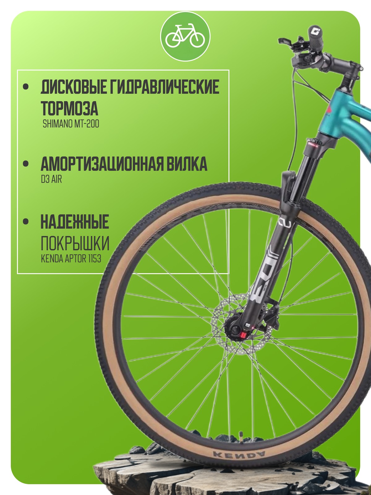 Горный велосипед с оборудованием предпрофессионального класса Microshift, 10 скоростей. Технические особенности: легкая алюминиевая рама (сглаженные швы, внутренняя проводка, конический рулевой стакан), амортизационная вилка D3 Air (воздушная, ход 120 мм, алюминиевые ноги диаметром 30 мм, магниевые штаны, черная анодировка, гидравлическая блокировка, регулировка отскока), двойные алюминиевые обода DP-27 (под ниппель AV, ширина 27 мм), дисковые гидравлические Shimano MT-200 (роторы 160/160 мм). Подходит для активной езды по различным дорогам и пересеченной местности. Диаметр колес - 29 дюймов. Вес - 13,7 кг (для размера 20 XL).