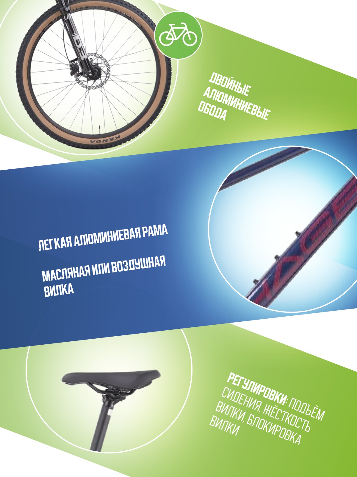 Регулировки и настройки: Блокировка вилки, Жесткость вилки, Подьем сидения.