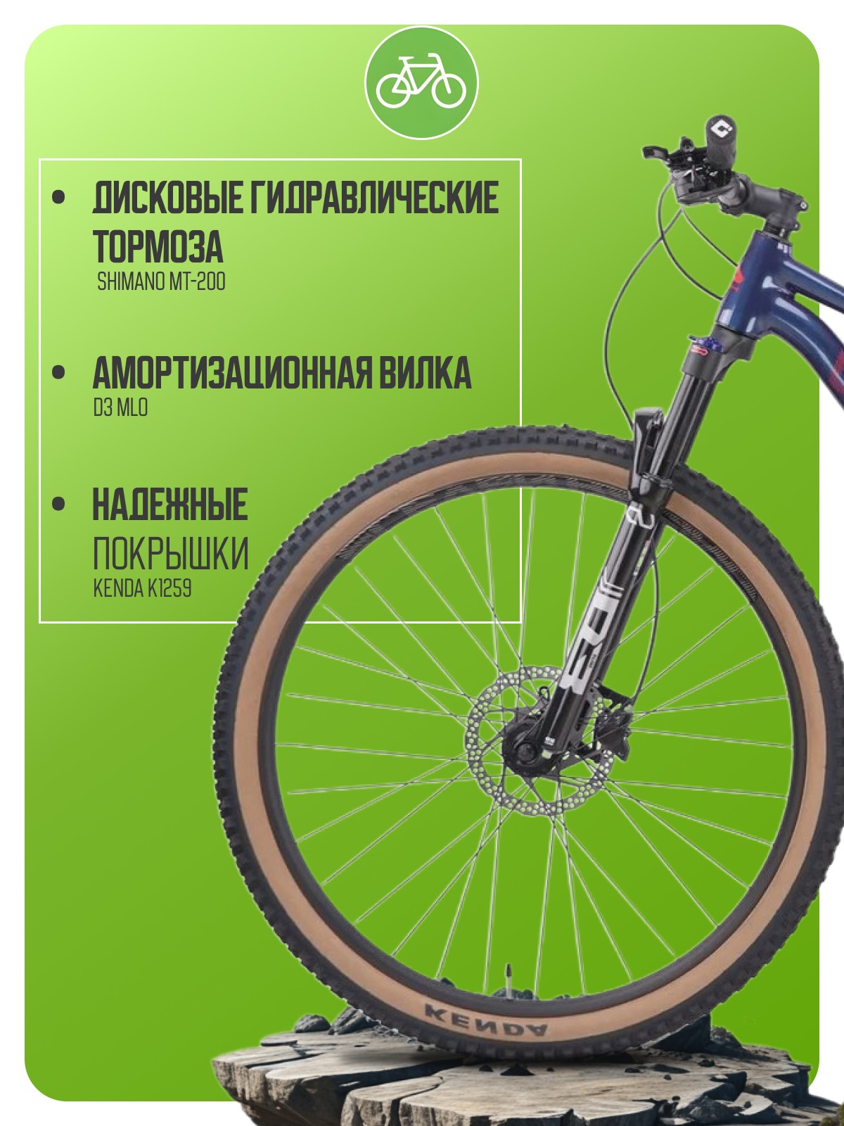 Особенности велосипеда: Алюминиевая рама, Амортизационная вилка, Баттинг рамы, Гидравлический привод тормозов, Гидроформинг рамы, Двойные обода, Дисковые тормоза, Многоскоростной.