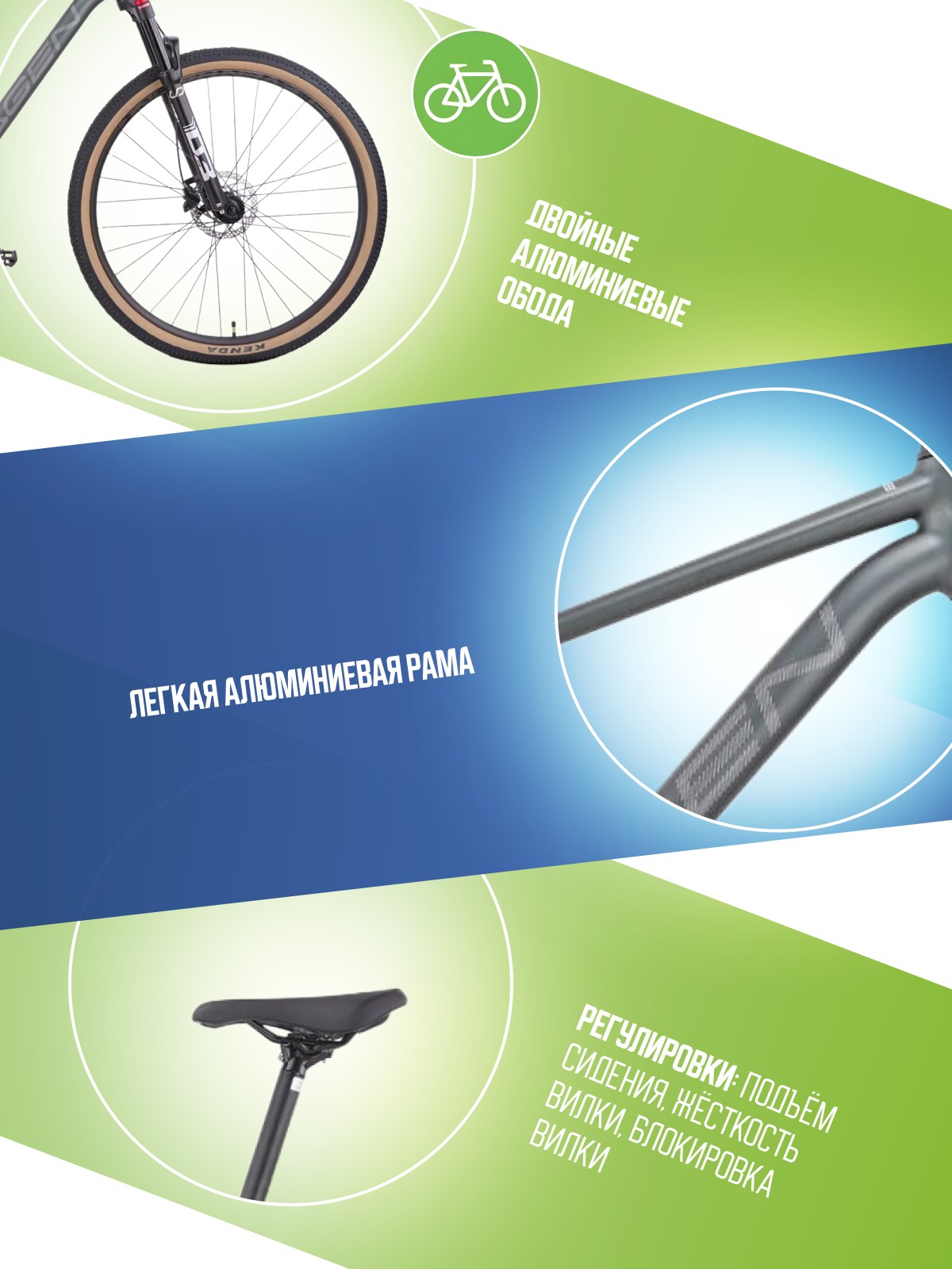 Особенности велосипеда: Алюминиевая рама, Амортизационная вилка, Баттинг рамы, Гидравлический привод тормозов, Гидроформинг рамы, Двойные обода, Дисковые тормоза, Многоскоростной.