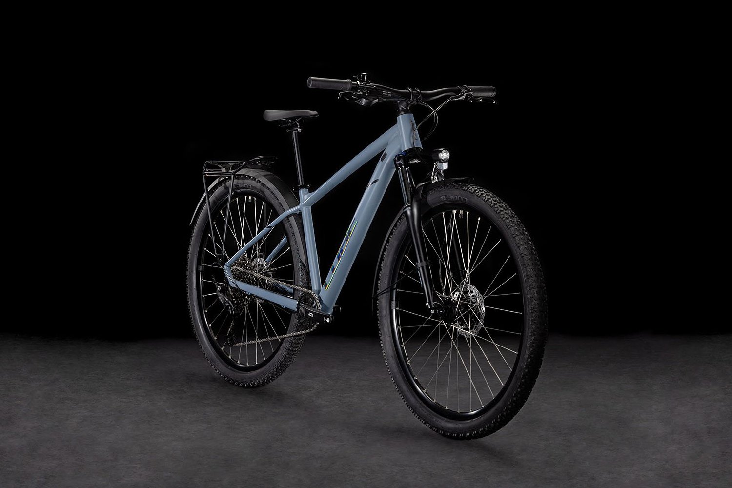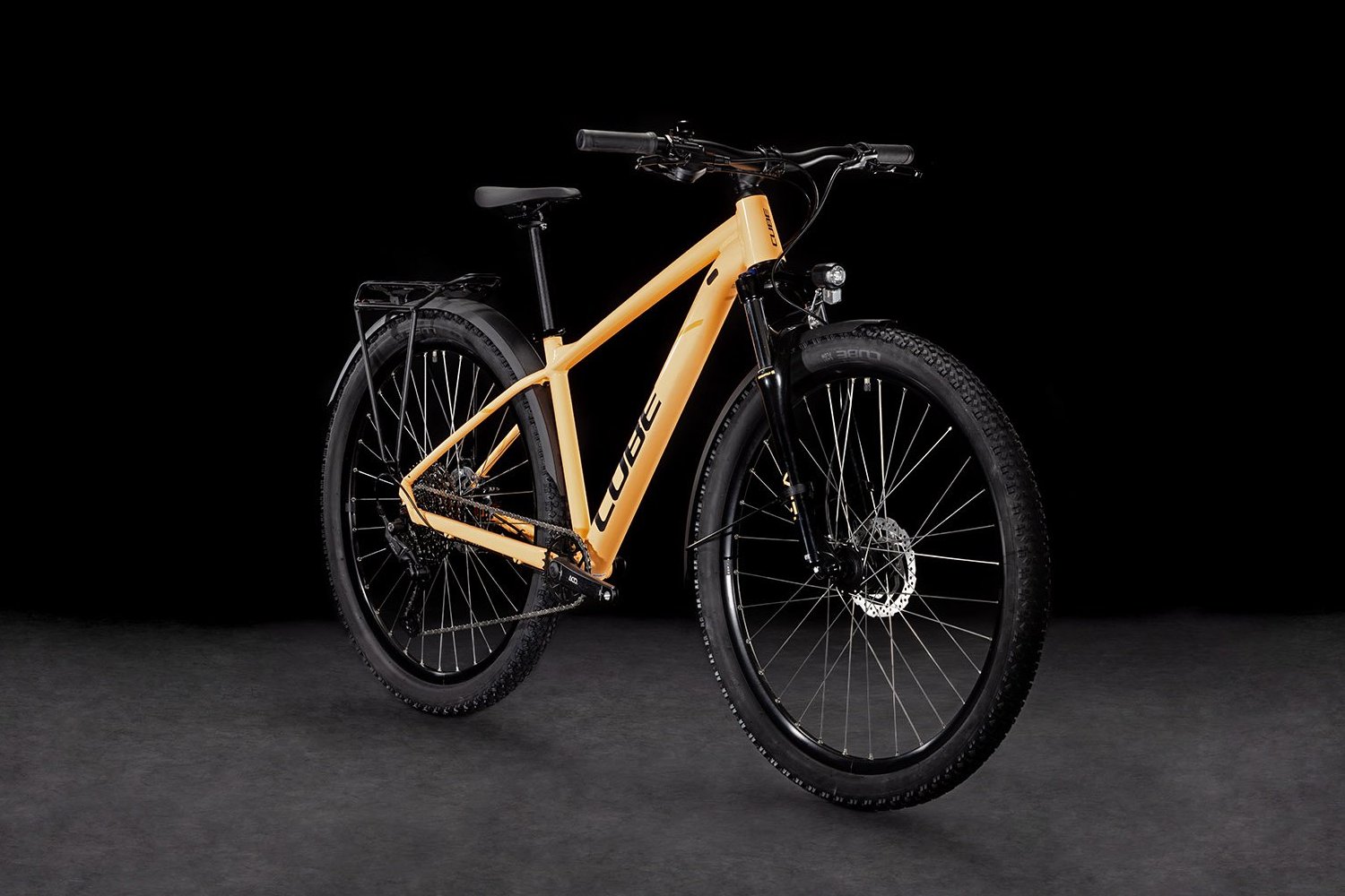 Горный велосипед с оборудованием предпрофессионального класса Shimano, 10 скоростей. Технические особенности: легкая алюминиевая рама Aluminium Lite (двойной баттинг, гидроформинг, скрытая проводка, конический рулевой стакан, крепление для подножки), амортизированная вилка SR Suntour XCT Disc (пружинно-эластомерная, ход 100 мм, механическая блокировка), двойные алюминиевые обода CUBE ZX20, дисковые гидравлические тормоза Shimano BR-MT200/UR300 (роторы 160/160 мм), длинные крылья, система освещения, подножка, звонок, задний багажник. Подходит для активного катания по различным дорогам и пересеченной местности. Диаметр колес - 27,5 дюймов. Вес - 17 кг.
