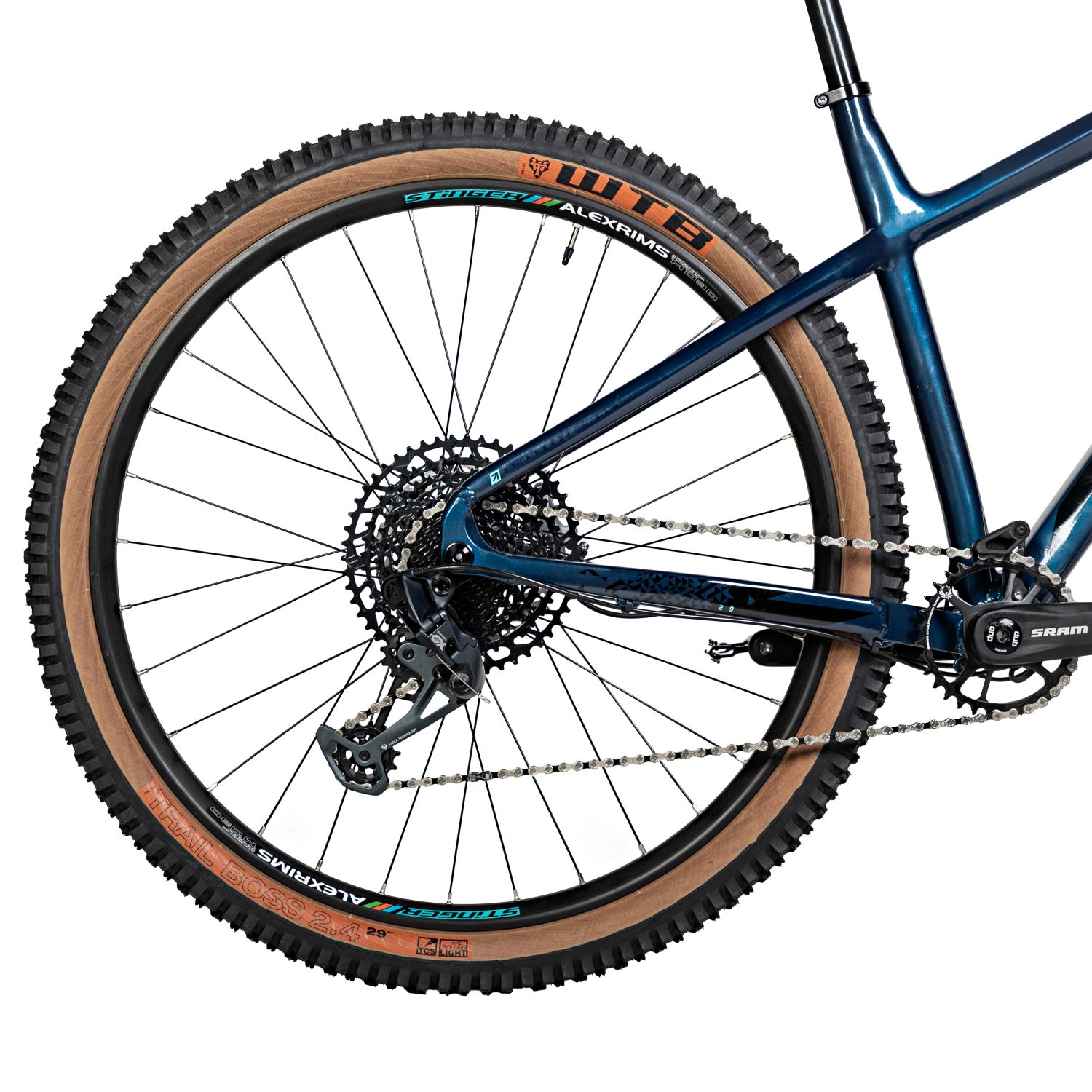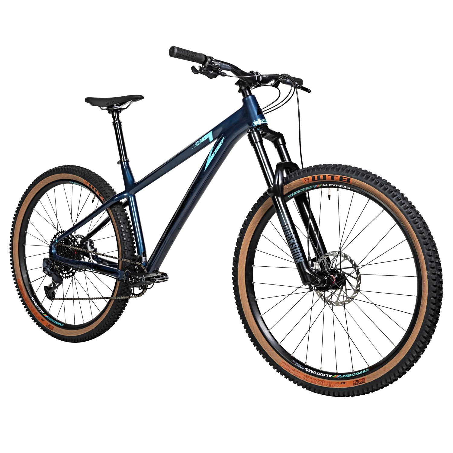 Хардтейл для езды в стиле трейл с оборудованием предпрофессионального класса SRAM, 12 скоростей. Технические особенности: алюминиевая рама (сплав 6061, гидроформинг, полированные швы, конусный рулевой стакан ZS, кареточный стакан Press Fit, крепление калипера внутри перьев PM, успокоитель цепи, скрытая прокладка тросов, бонки для флягодержателя, съемный петух UDH, Boost стандарт на оси 12х148 мм), амортизационная вилка Rockshox 35 Silver (воздушная, ход 140 мм, регулировка давления пружины, регулировка демпфирования и отскока, крепление калипера PM, Boost 15х110 мм), двойные алюминиевые обода Alexrims MD30 (пистонированные, под FV ниппель, совместимы с бескамерной резиной), дисковые гидравлические тормоза Sram Level Bronze (4-х поршневой калипер спереди, 2-х поршневой калипер сзади, роторы Avid 180/160 мм). Подходит для спортивного катания в стиле трейл. Диаметр колес - 29 дюймов. Вес - 14,9 кг.