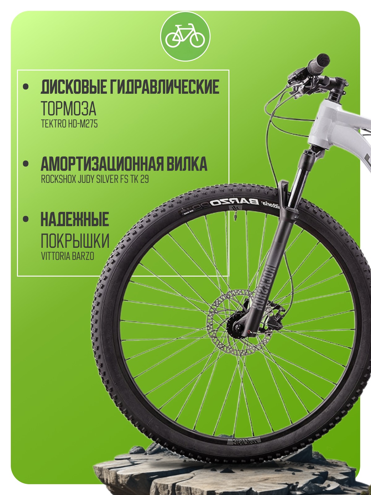 Хардтейл для езды в стиле кросс-кантри с оборудованием предпрофессионального класса SRAM, 12 скоростей. Технические особенности: алюминиевая рама Rogue 6061 (двойной баттинг), амортизационная вилка Rockshox Judy Silver FS TK 29 (крепление под дисковый тормоз, блокировка, регулировка отскока, регулировка жесткости пружины), двойные алюминиевые обода TR MD16 36H, дисковые гидравлические тормоза Tektro HD-M275 (роторы 180/180 мм). Подходит для спортивного катания в стиле кросс-кантри. Диаметр колес - 29 дюймов. Вес - 13,8 кг.
