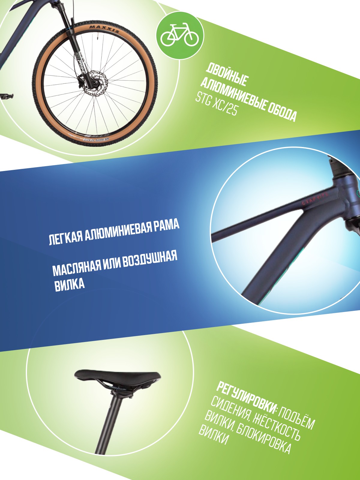 Регулировки и настройки: Блокировка вилки, Жесткость вилки, Подьем сидения.