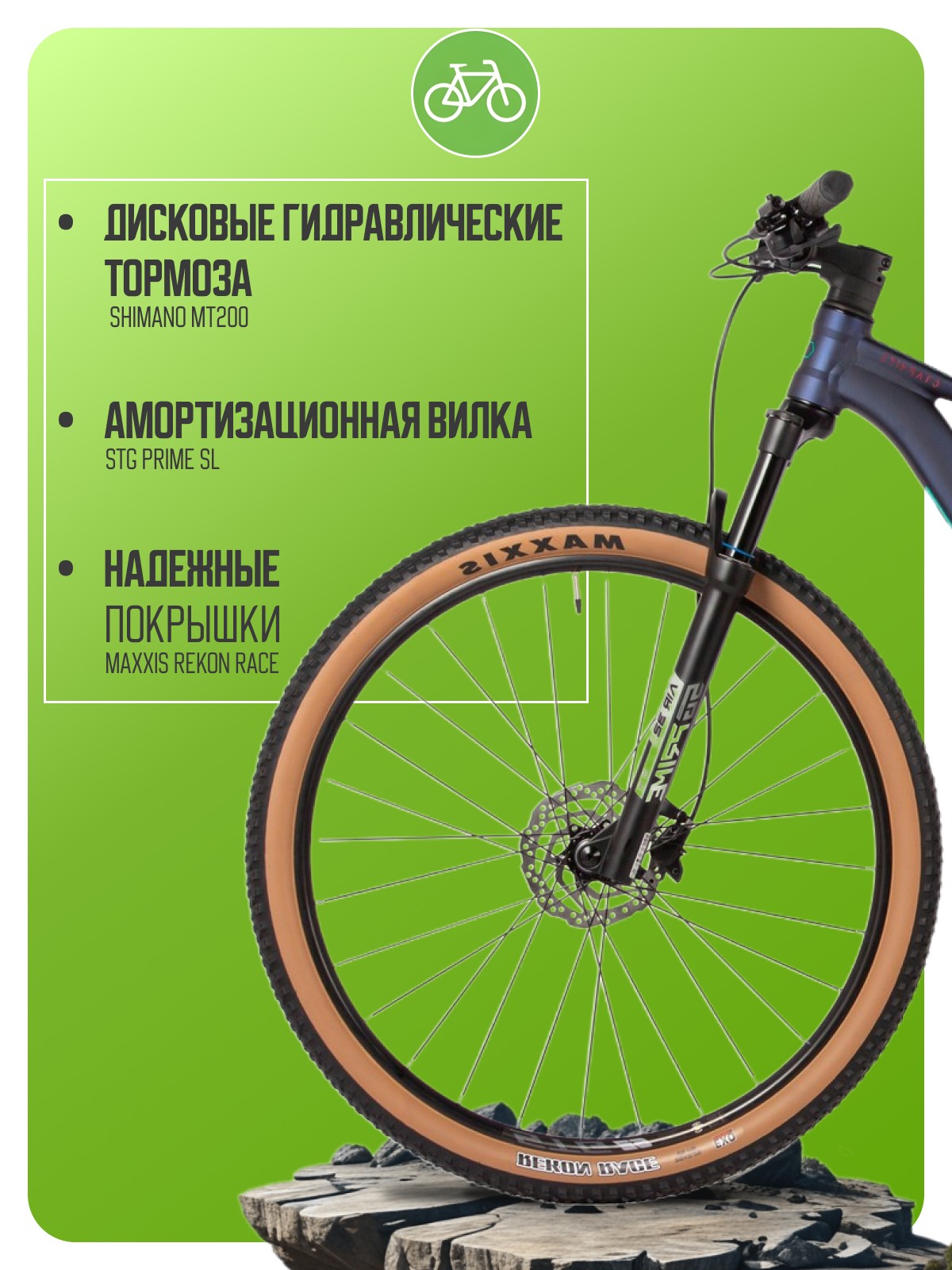 Хардтейл для езды в стиле кросс-кантри с оборудованием любительского класса Shimano, 8 скоростей. Технические особенности: легкая алюминиевая рама (сплав 6061-T6, баттинг, гидроформинг, сглаженные швы, скрытая проводка, дропауты под полую ось, крепление калипера Flat Mount), амортизационная вилка STG Prime SL (воздушно-масляная, ход 120 мм, крепление калипера Post Mount, блокировка), двойные алюминиевые обода STG XC/25 (под ниппель Presta), дисковые гидравлические тормоза Shimano MT200 (роторы Shimano 160/160 мм, 6-болтов). Подходит для активной езды по различным дорогам и пересеченной местности. Диаметр колес - 29 дюймов. Вес - 13,9 кг.
