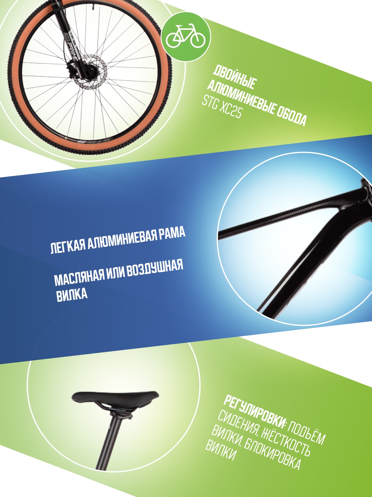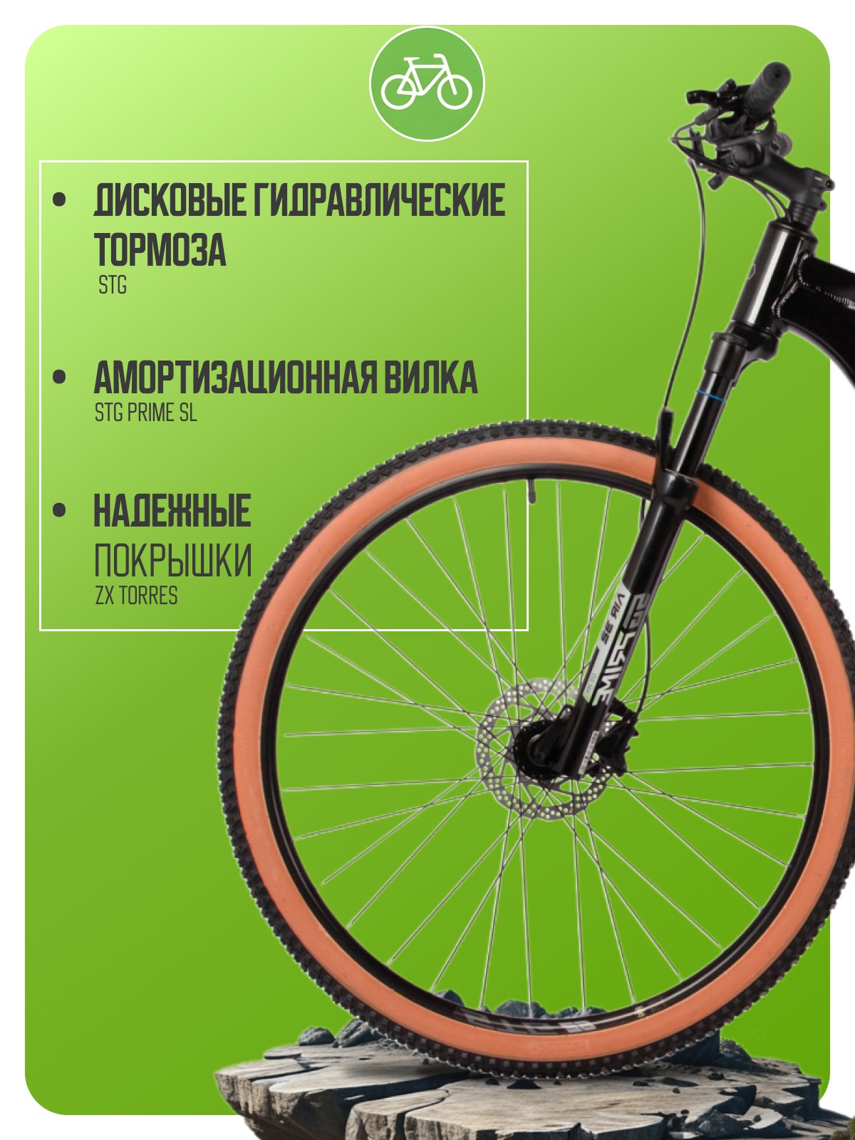 Горный велосипед с оборудованием любительского класса SRAM, 8 скоростей. Технические особенности: легкая алюминиевая рама (сплав 6061-T6, гидроформинг, баттинг, полуинтегрированная рулевая колонка, кареточный стакан BSA, скрытая проводка, съёмный петух), амортизационная вилка STG Prime SL (воздушно-масляная, ход 120 мм, крепление калипера Post Mount, блокировка), двойные алюминиевые обода STG XC25 (готовы к бескамерному использованию, под AV ниппель), дисковые гидравлические тормоза STG (роторы 180/160 мм или 160/140 мм в размере 18″, с креплением на 6 болтов). Подходит для активной езды по различным дорогам и пересеченной местности. Диаметр колес - 29 дюймов. Вес - 14,7 кг.