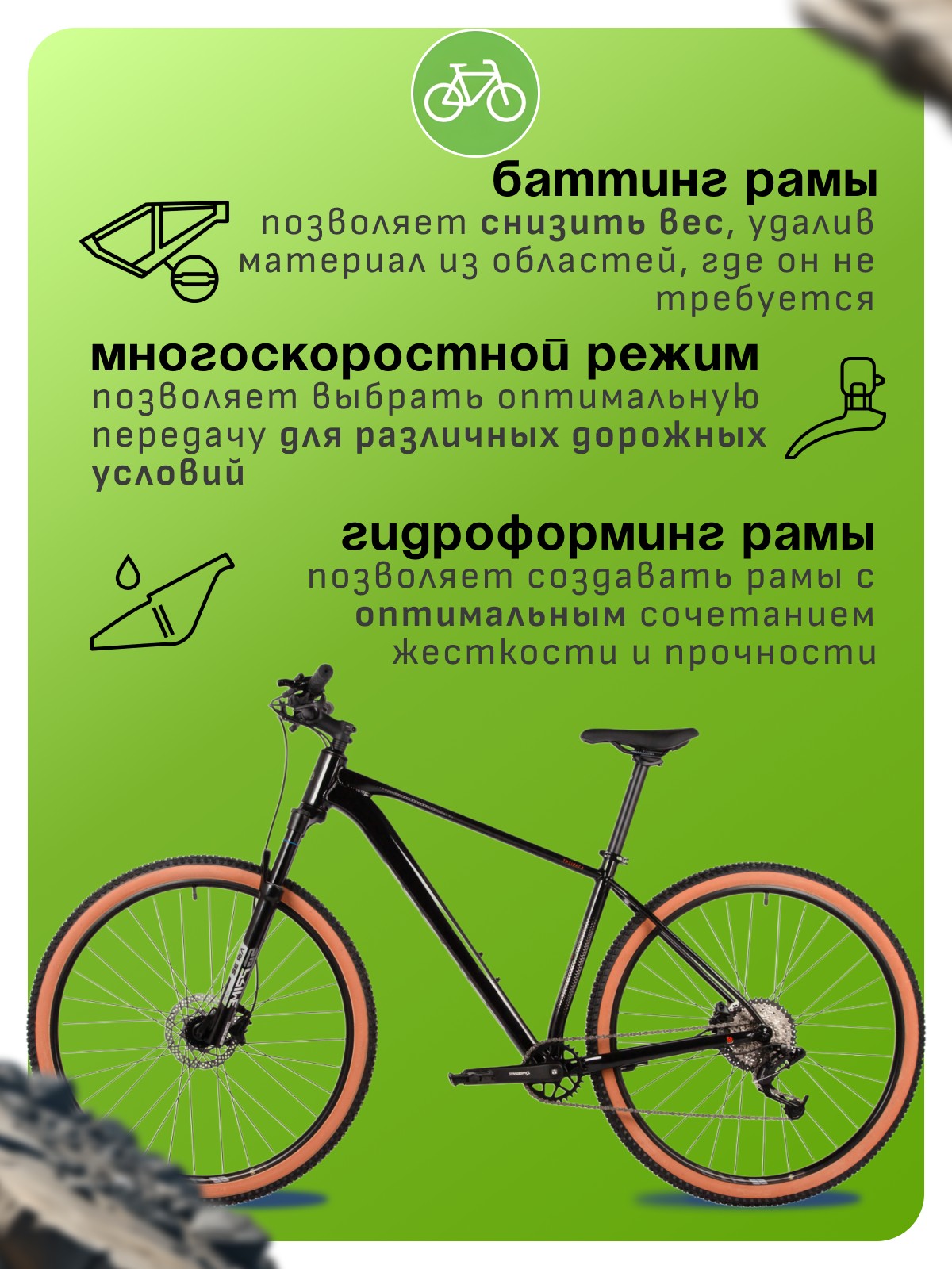 Особенности велосипеда: Алюминиевая рама, Амортизационная вилка, Баттинг рамы, Гидравлический привод тормозов, Гидроформинг рамы, Двойные обода, Дисковые тормоза, Масляная или воздушная вилка, Многоскоростной.