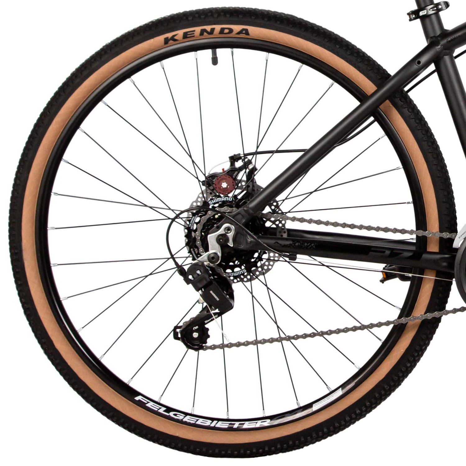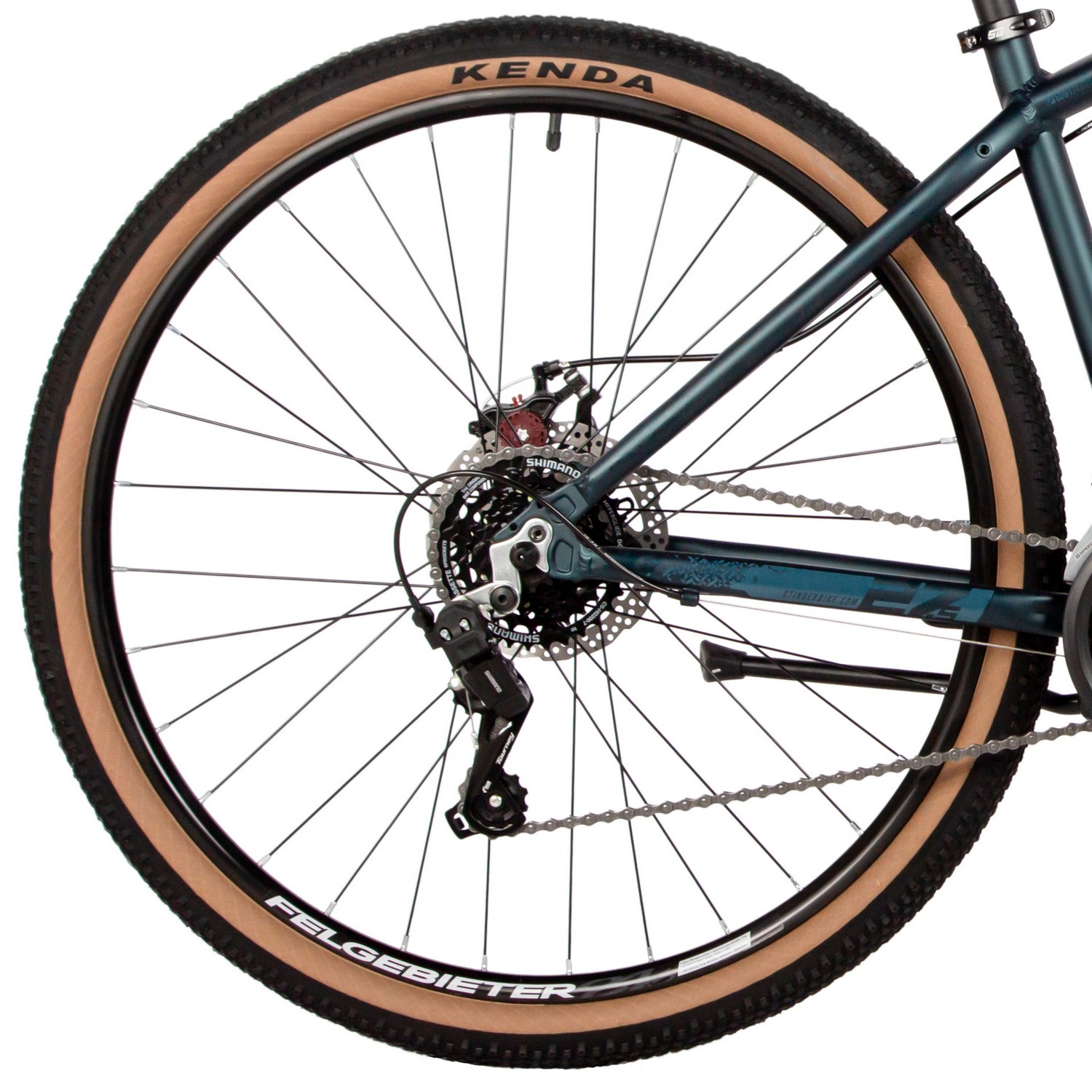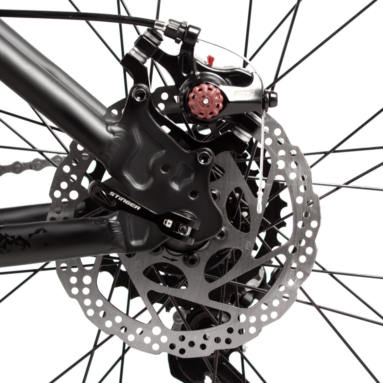 Горный велосипед с оборудованием начального класса Shimano, 14 скоростей. Технические особенности: легкая алюминиевая рама (сплав 6061-T6, полуинтегрированная рулевая колонка, кареточный стакан BSA, частично скрытая прокладка тросов, съёмный петух), амортизационная вилка STG Spice (пружинная, ход 110 мм, регулировка преднатяга пружины), двойные алюминиевые обода Felgebeiter VB-18 (под AV ниппель), дисковые механические тормоза STG (роторы 160/160 мм с креплением на 6 болтов), защита цепи, подножка. Подходит для активной езды по различным дорогам и пересеченной местности. Диаметр колес - 27,5 дюймов. Вес - 15,1 кг.