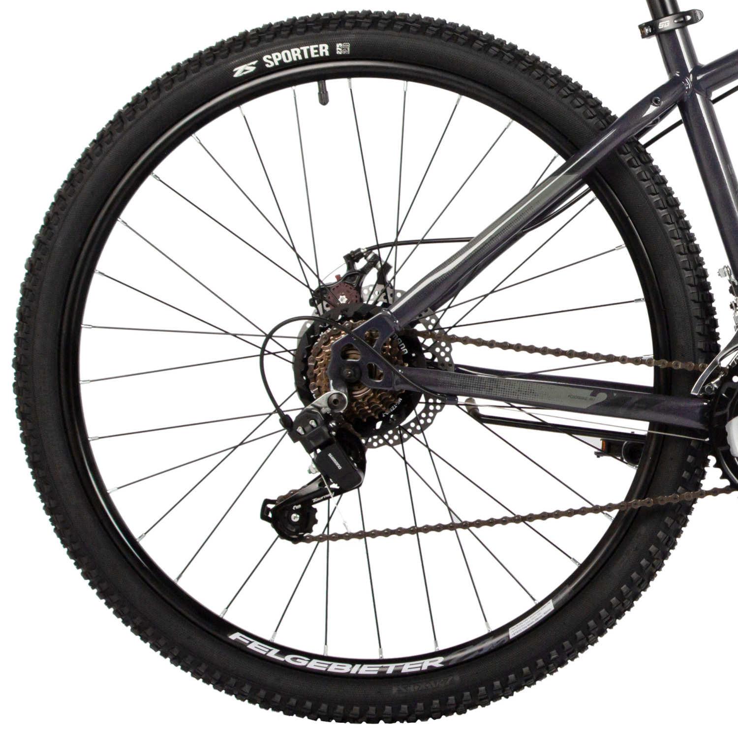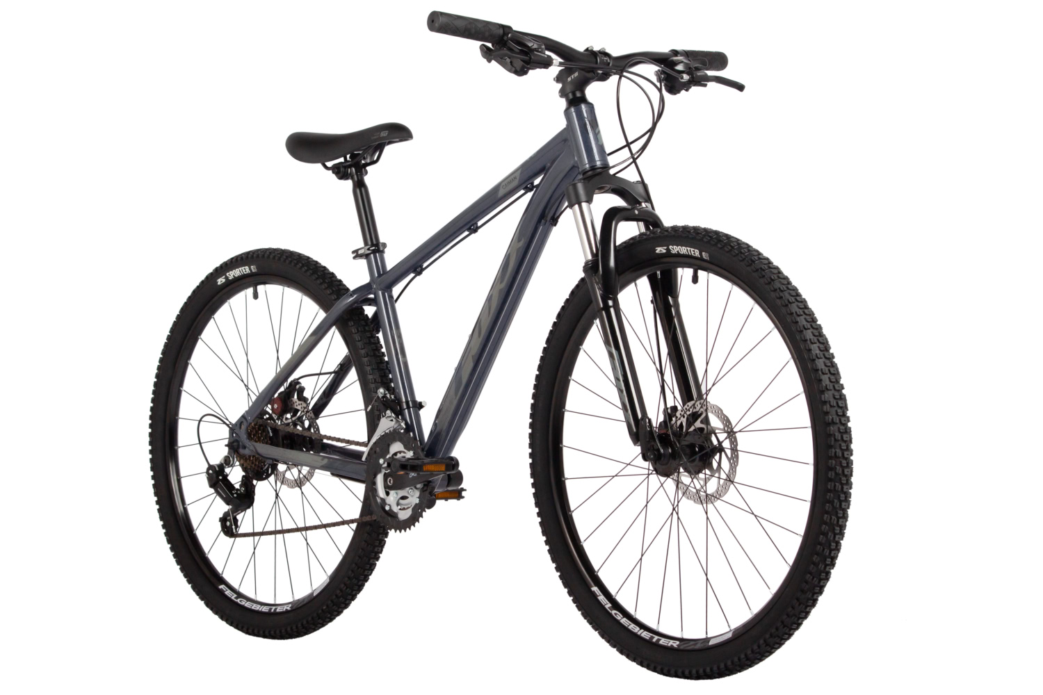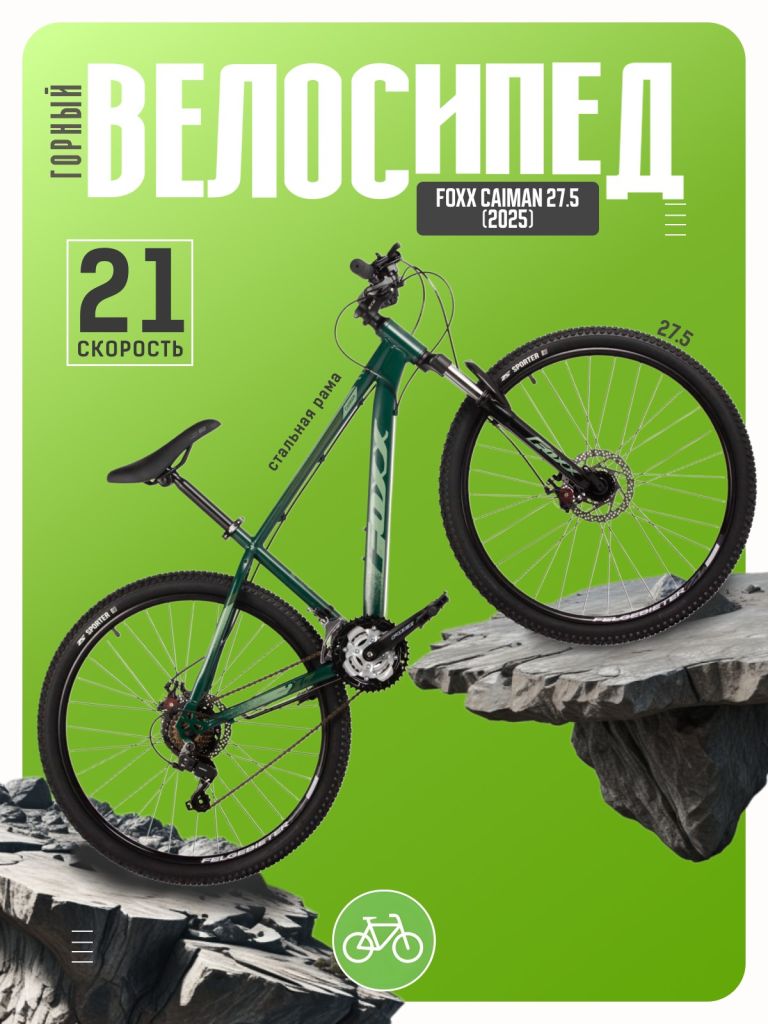 Горный велосипед для начинающих с навесным оборудованием Shimano, 21 скорость. Технические особенности: прочная стальная рама (крепление калипера IS, интегрированный петух), амортизационная вилка Foxxshox (пружинная, ход 50 мм, алюминиевая корона), двойные алюминиевые обода (под AV ниппель), дисковые механические тормоза (роторы 160/160 мм, крепление на 6 болтов), подножка, катафоты. Подходит для прогулочной езды по различным дорогам и пересеченной местности. Диаметр колес - 27,5 дюймов. Вес - 17,5 кг.