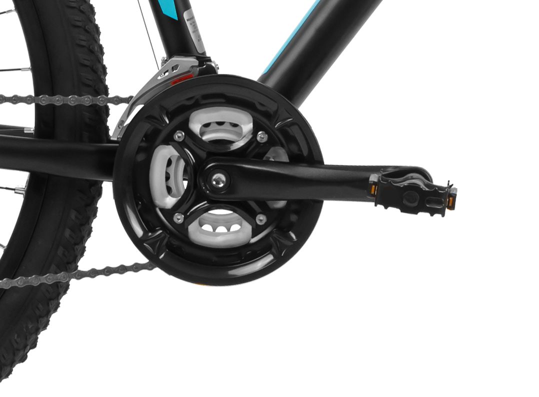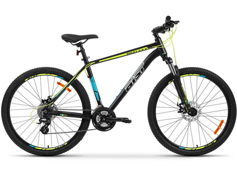 Горный велосипед с оборудованием начального любительского класса Shimano, 24 скорости. Технические особенности: легкая алюминиевая рама (частично скрытая проводка, прямой рулевой стакан, кареточный стакан BSA, съемный петух, крепление калипера IS), амортизационная вилка SR Suntour XCE-DS (пружинно-эластомерная, ход 100 мм, регулировка преднагрузки), двойные алюминиевые обода (под AV ниппель), дисковые механические тормоза, катафоты. Подходит для прогулочной езды по различным дорогам и пересеченной местности. Диаметр колес - 27,5 дюймов. Вес - 15,2 кг.