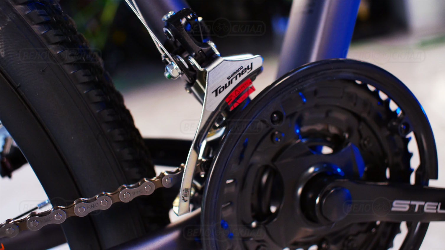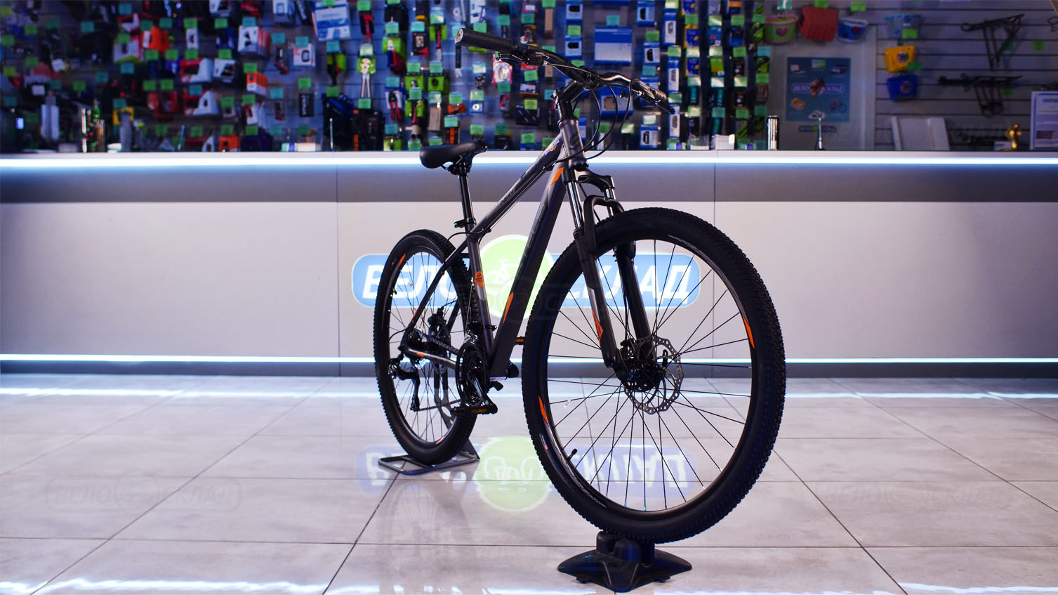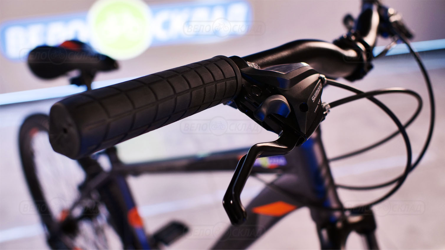 Горный велосипед для начинающих с оборудованием начального класса Shimano, 21 скорость. Технические особенности: прочная стальная рама (формированные трубы, открытая прокладка тросов, интегрированный петух, кареточный стакан BSA, рулевой стакан ZS, комплект бонок для аксессуаров, крепление калипера IS), амортизационная вилка (пружинно-эластомерная, стальная с алюминиевой короной, ход 80 мм), двойные алюминиевые обода (под AV ниппель), дисковые механические тормоза (роторы 180/160 мм), катафоты. Подходит для прогулочного катания в городских условиях и по несложным маршрутам в лесу. Диаметр колес - 29 дюймов. Вес - 18,2 кг.