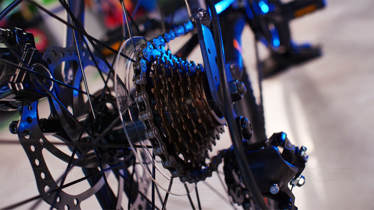 Амортизационная вилка, Двойные обода, Дисковые тормоза, Защита цепи, Катафоты, Многоскоростной