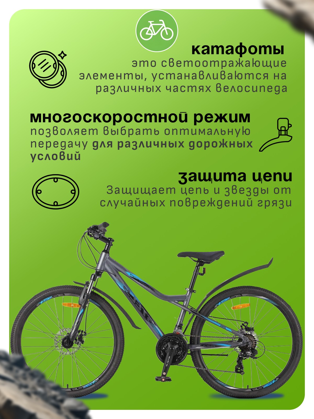 Особенности велосипеда: Алюминиевая рама, Амортизационная вилка, Двойные обода, Дисковые тормоза, Защита цепи, Крылья, Многоскоростной, Подножка.