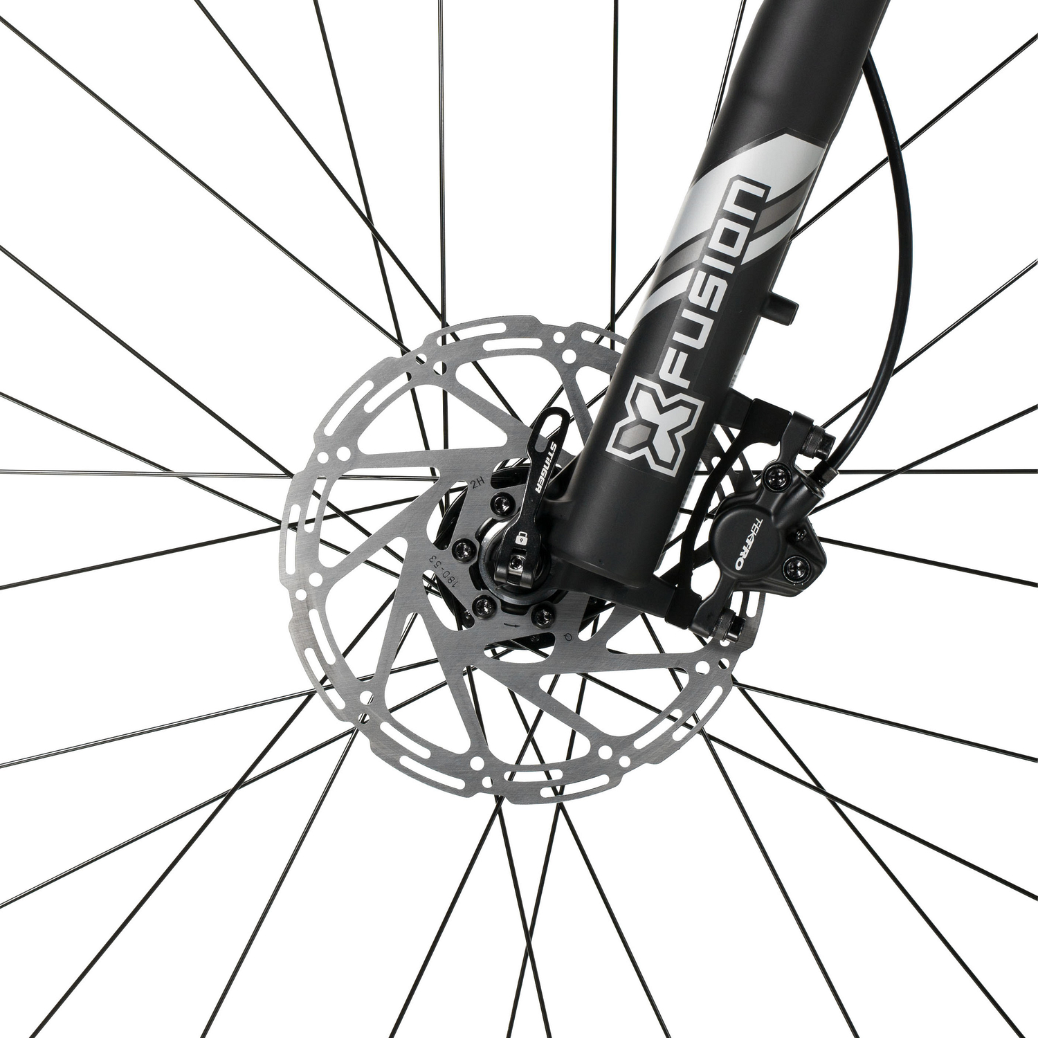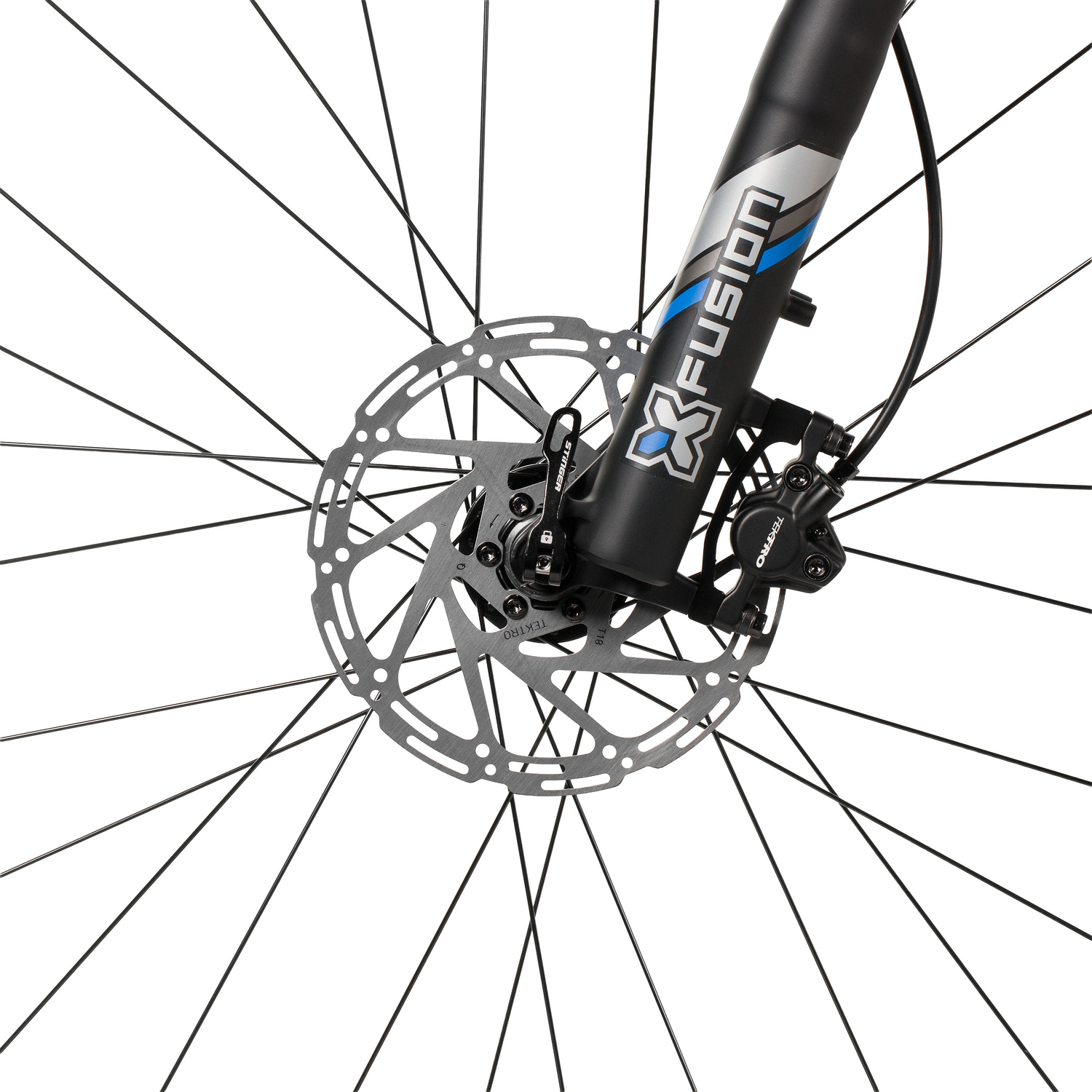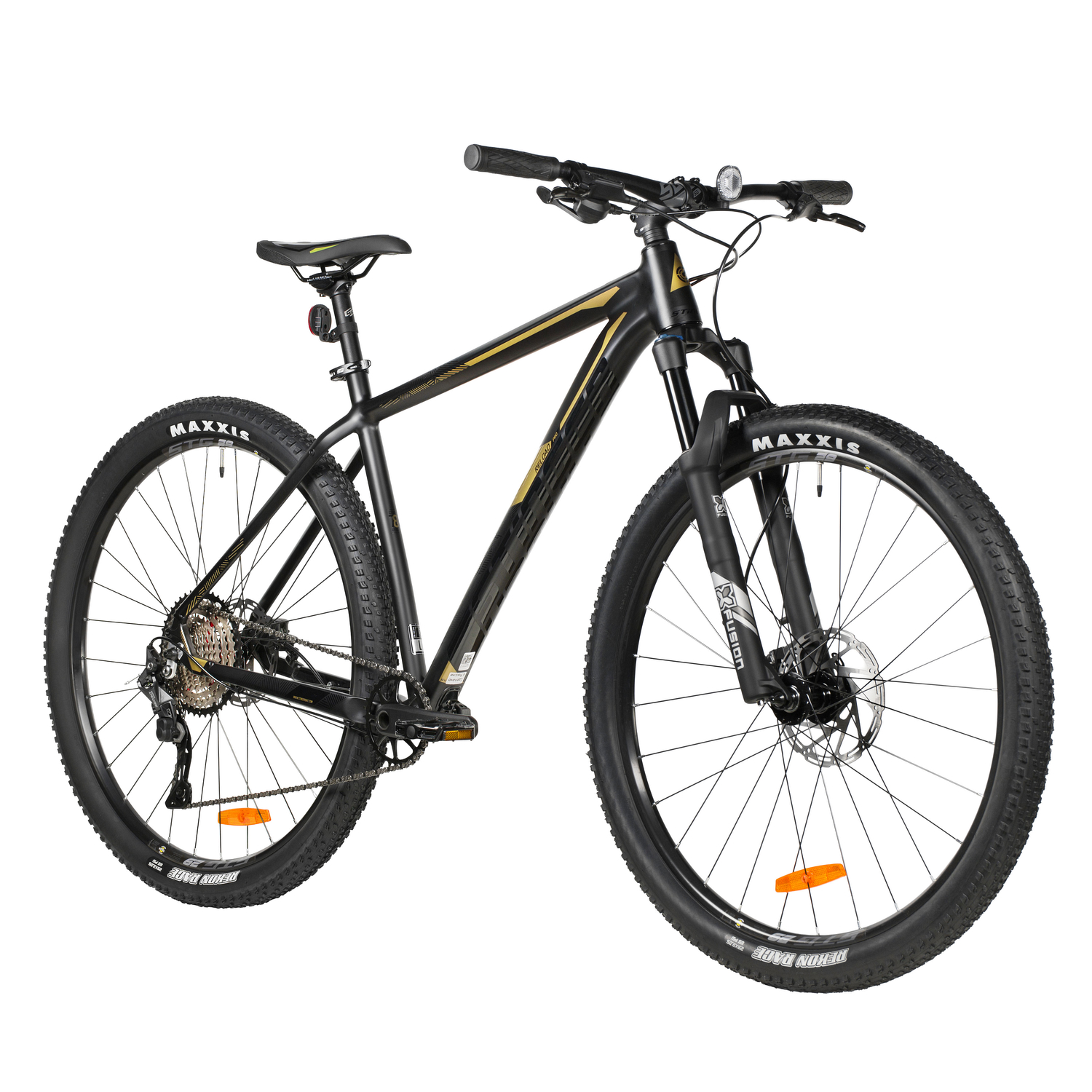 Легкий хардтейл для езды в стиле кросс-кантри с оборудованием предпрофессионального класса Shimano, 18 скоростей. Технические особенности: алюминиевая рама (сплав 6061-T6, гидроформинг, баттинг, скрытая проводка, сглаженные швы, конический рулевой стакан, кареточный стакан BSA, съемный петух, крепление калипера PM), амортизационная вилка X-Fusion Migo 32 (воздушно-масляная, ход 100 мм, гидравлическая блокировка, крепление калипера PM), двойные алюминиевые обода STG XC/25 (под ниппель Presta FV, подходят для бескамерного использования), дисковые гидравлические тормоза Tektro M275 (роторы 160/160 мм). Подходит для активной езды по различным дорогам и пересеченной местности. Диаметр колес - 29 дюймов. Вес - 14 кг.