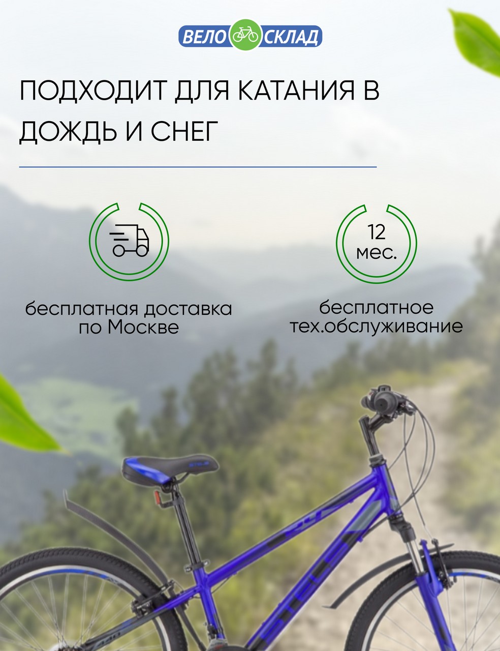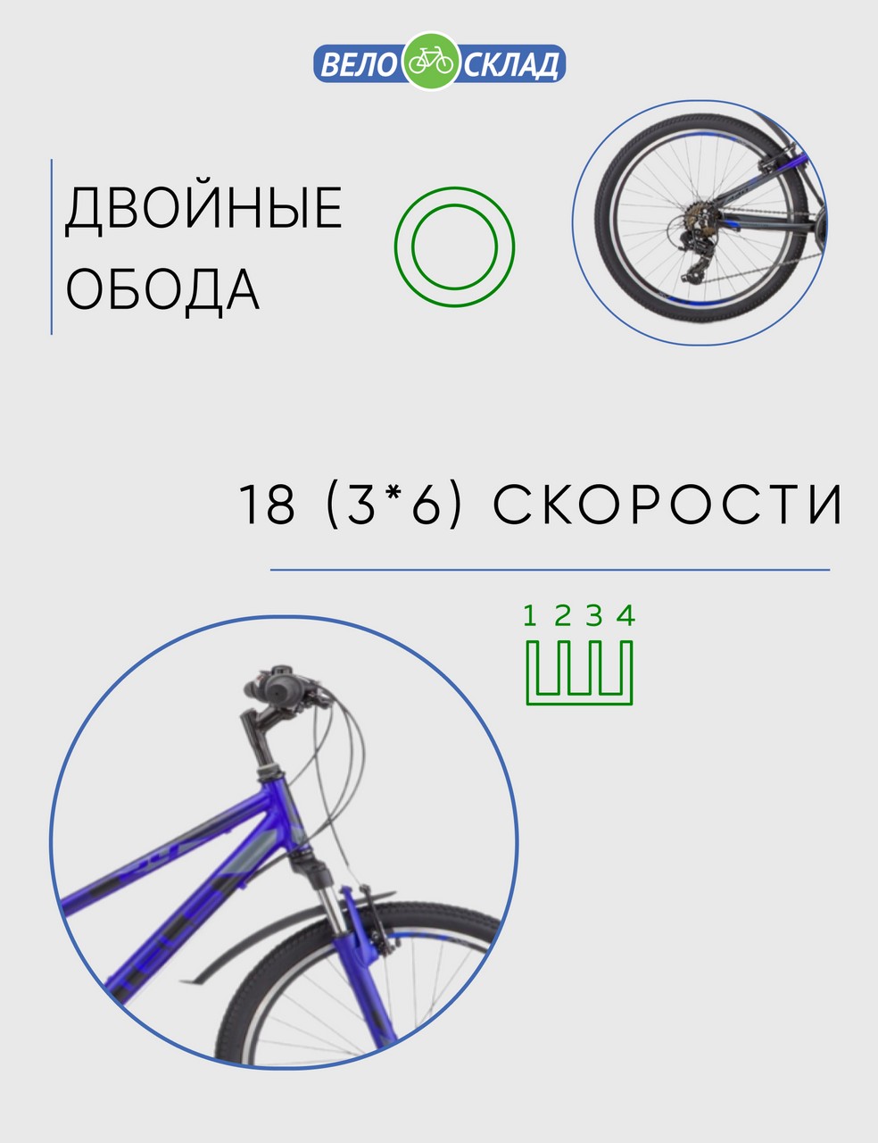 Особенности велосипеда: Алюминиевая рама, Амортизационная вилка, Двойные обода, Катафоты, Крылья, Многоскоростной, Широкое седло.