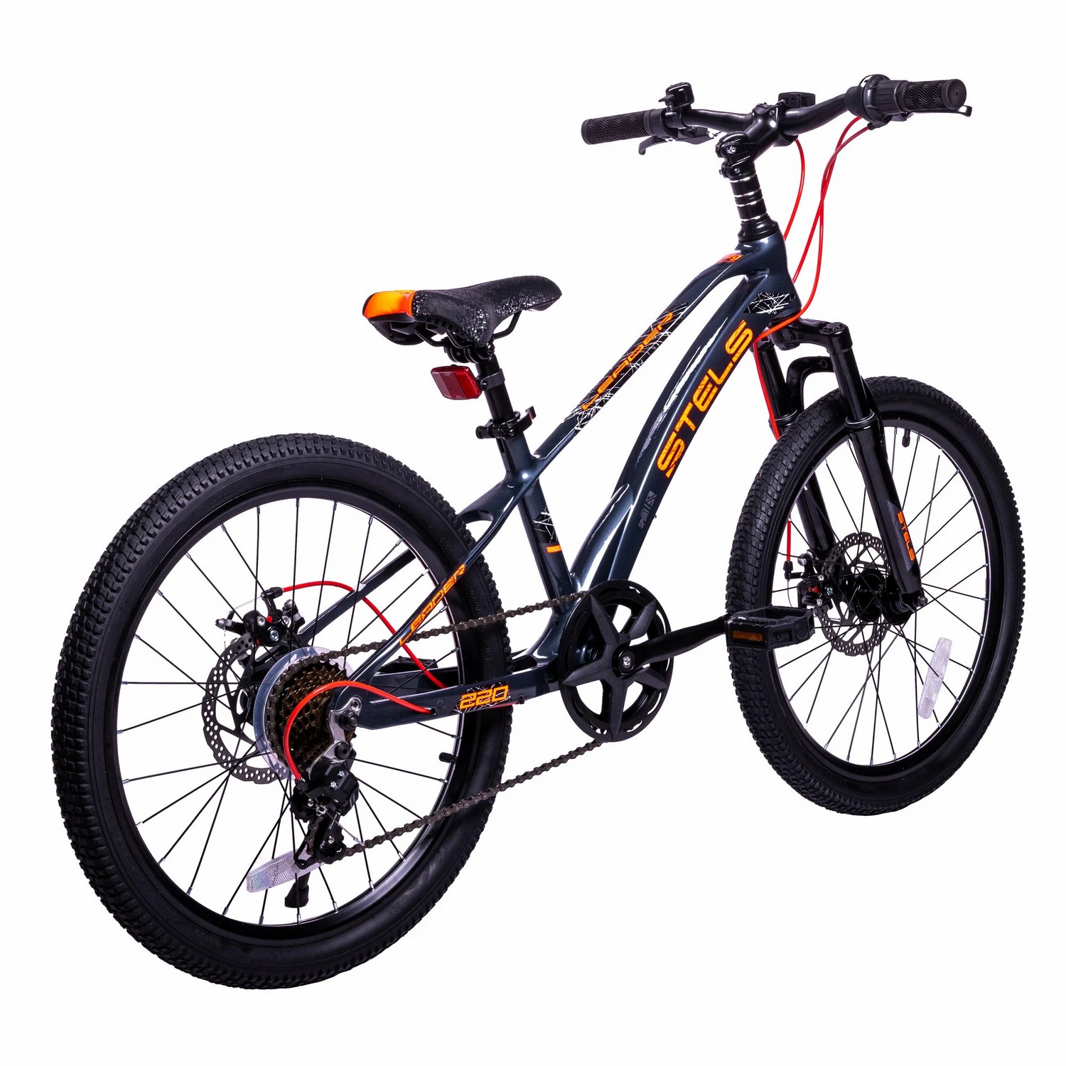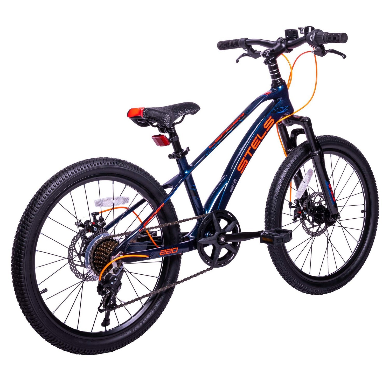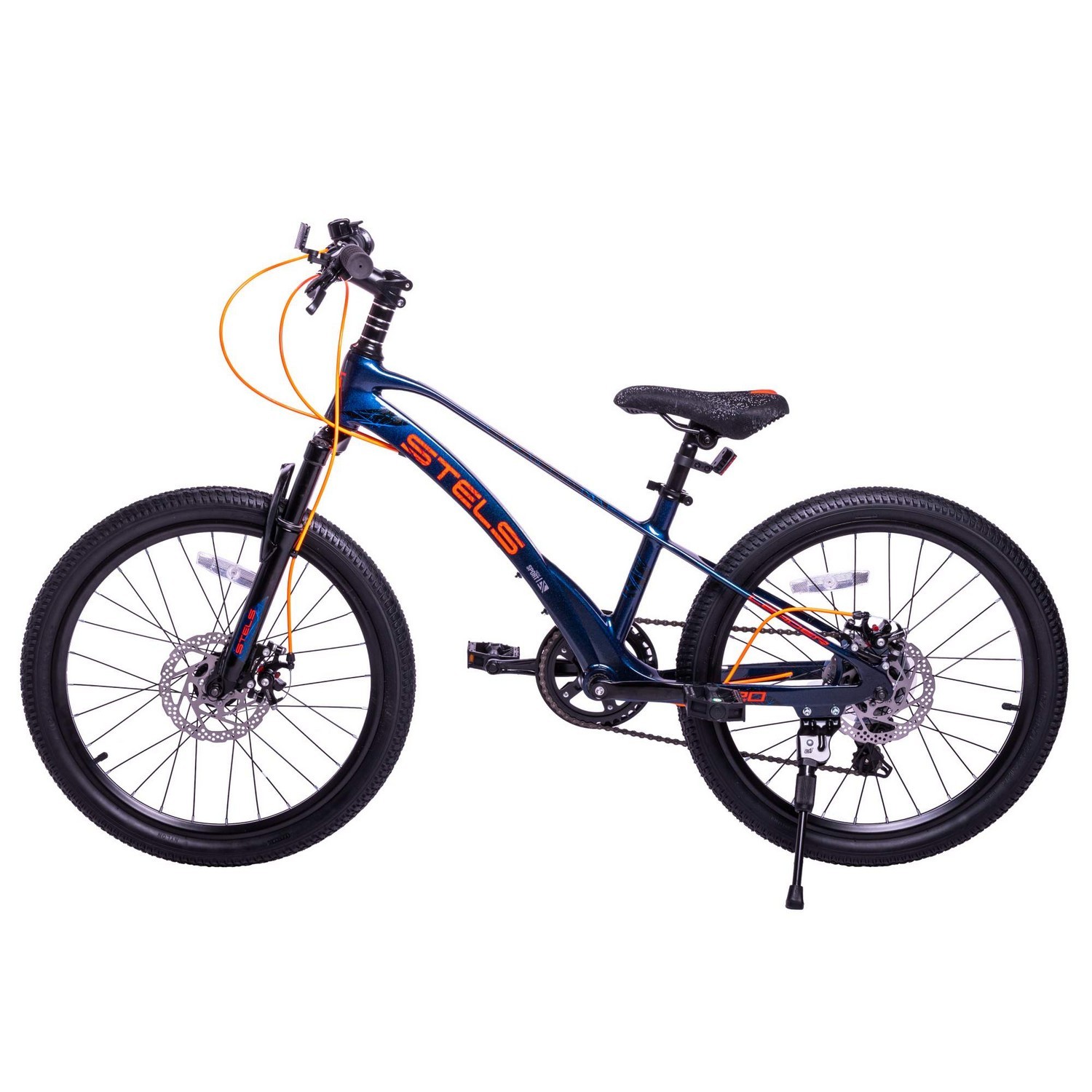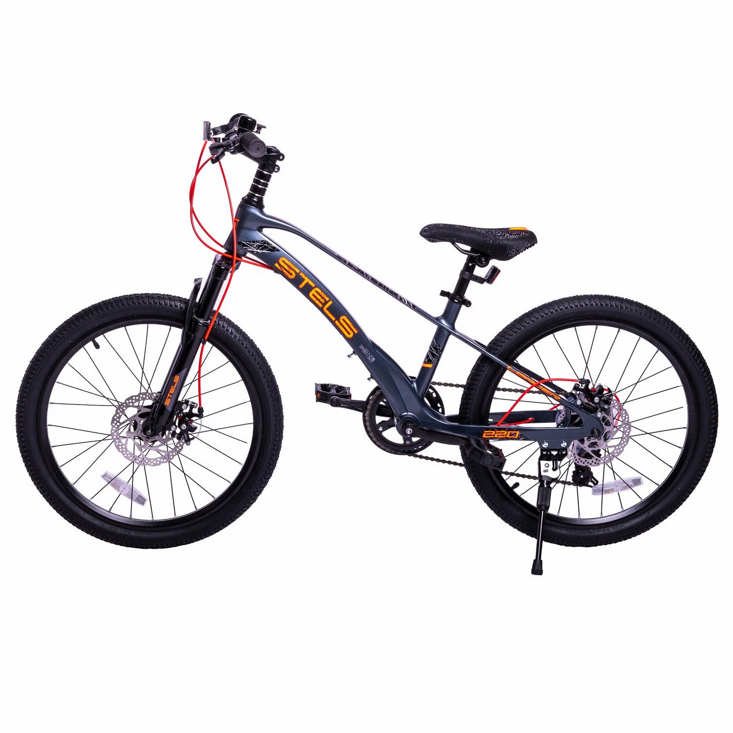 Велосипед, предназначенный для детей в возрасте от пяти до девяти лет, с оборудованием начального класса Shimano, 7 скоростей. Технические особенности: легкая рама из магниевого сплава, амортизационная вилка, двойные алюминиевые обода (под ниппель AV), дисковые механические тормоза (роторы 160/160 мм), защита цепи, катафоты, звонок, подножка. Подходит для прогулочного катания в городских условиях и по несложным маршрутам в лесу. Диаметр колес - 22 дюйма. Вес - 11 кг.