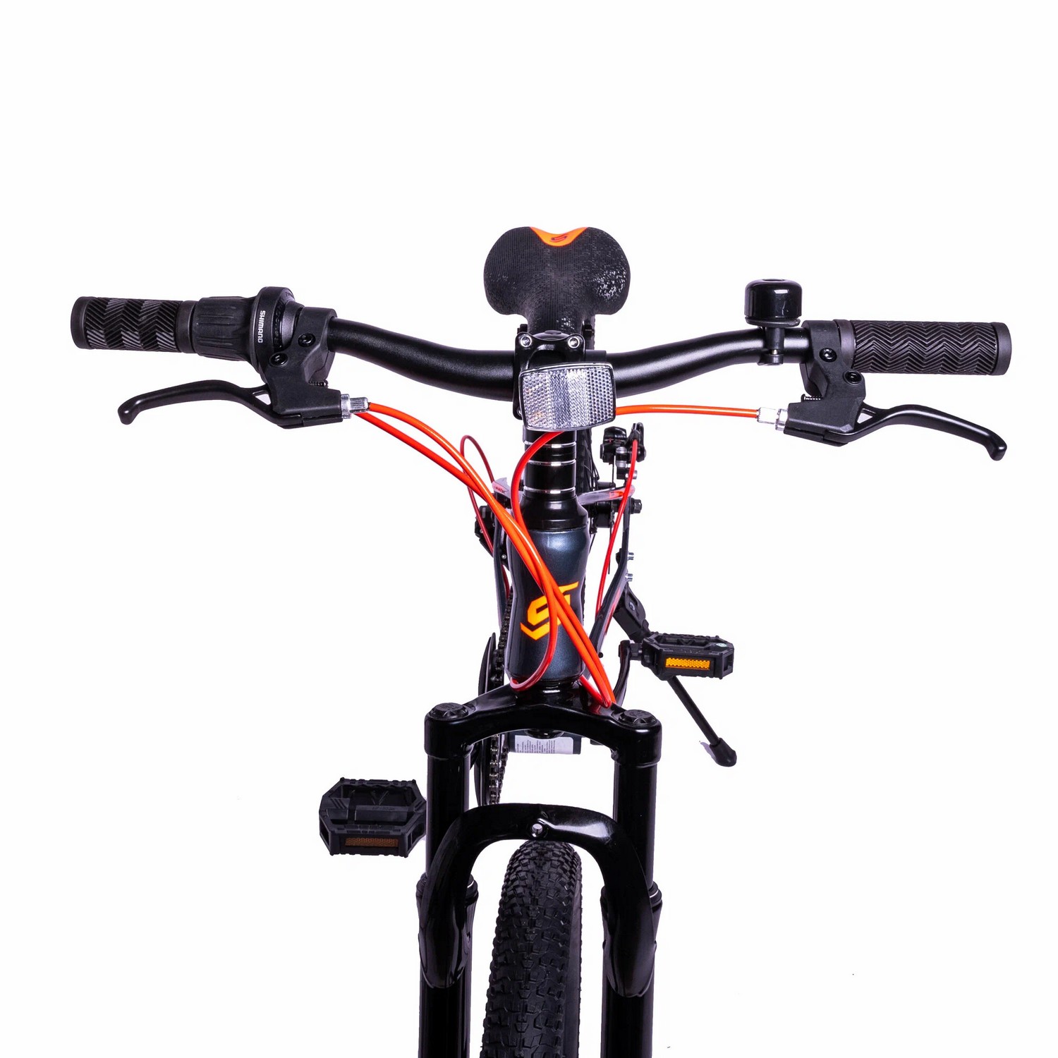 Особенности велосипеда: Амортизационная вилка, Двойные обода, Дисковые тормоза, Защита цепи, Звонок, Катафоты, Многоскоростной, Подножка.