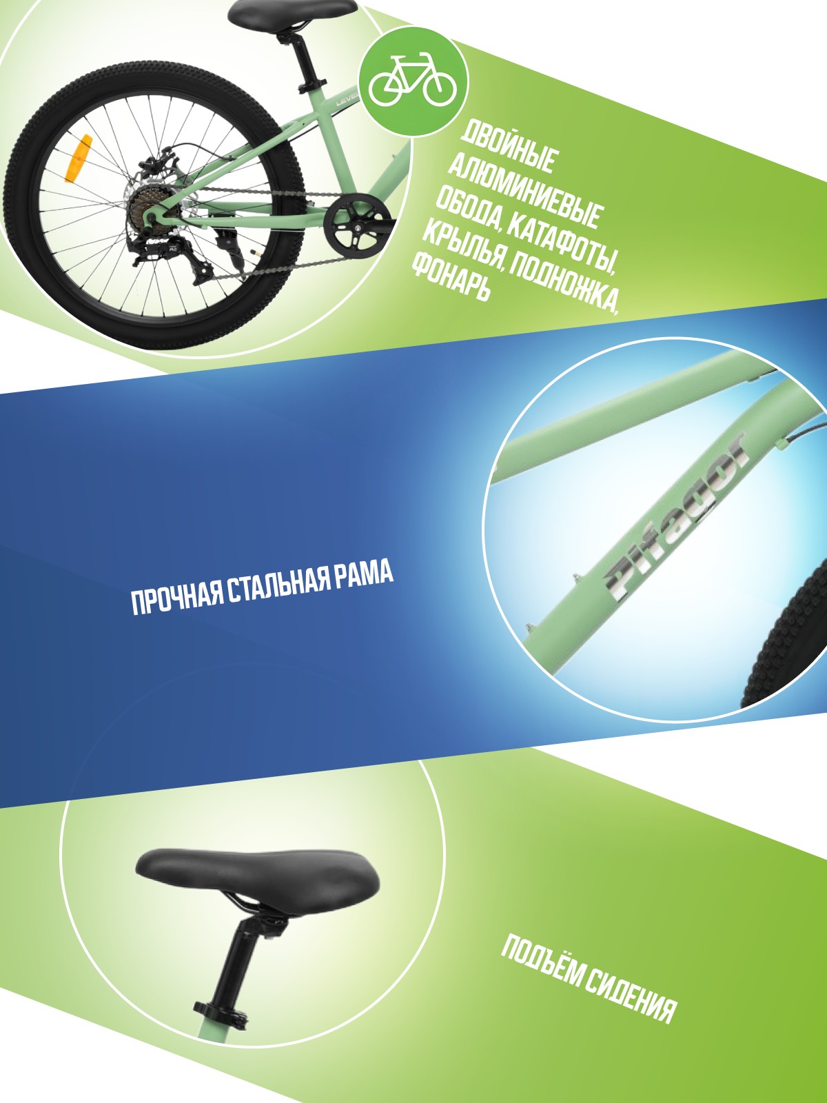 Двойные обода, Дисковые тормоза, Звонок, Катафоты, Крылья, Многоскоростной, Насос, Подножка, Фонарь
