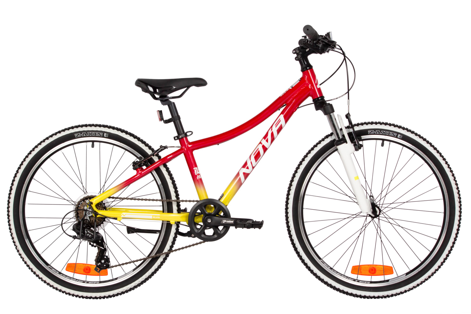 Подростковый велосипед для девочек с оборудованием начального класса Shimano, 7 скоростей. Технические особенности: легкая алюминиевая рама (частично скрытая проводка, кареточный стакан BSA, прямой рулевой стакан, съемный петух, крепление калипера IS), амортизационная вилка Novatrack (пружинно-эластомерная, хромированные ноги, ход 40 мм), двойные алюминиевые обода (под ниппель AV), надежные ободные тормоза STG V-Brake, защита цепи, защита заднего переключателя, подножка, катафоты. Подходит для прогулочной езды по ровным дорогам и по несложной пересеченной местности. Диаметр колес - 24 дюйма. Вес - 13,5 кг.