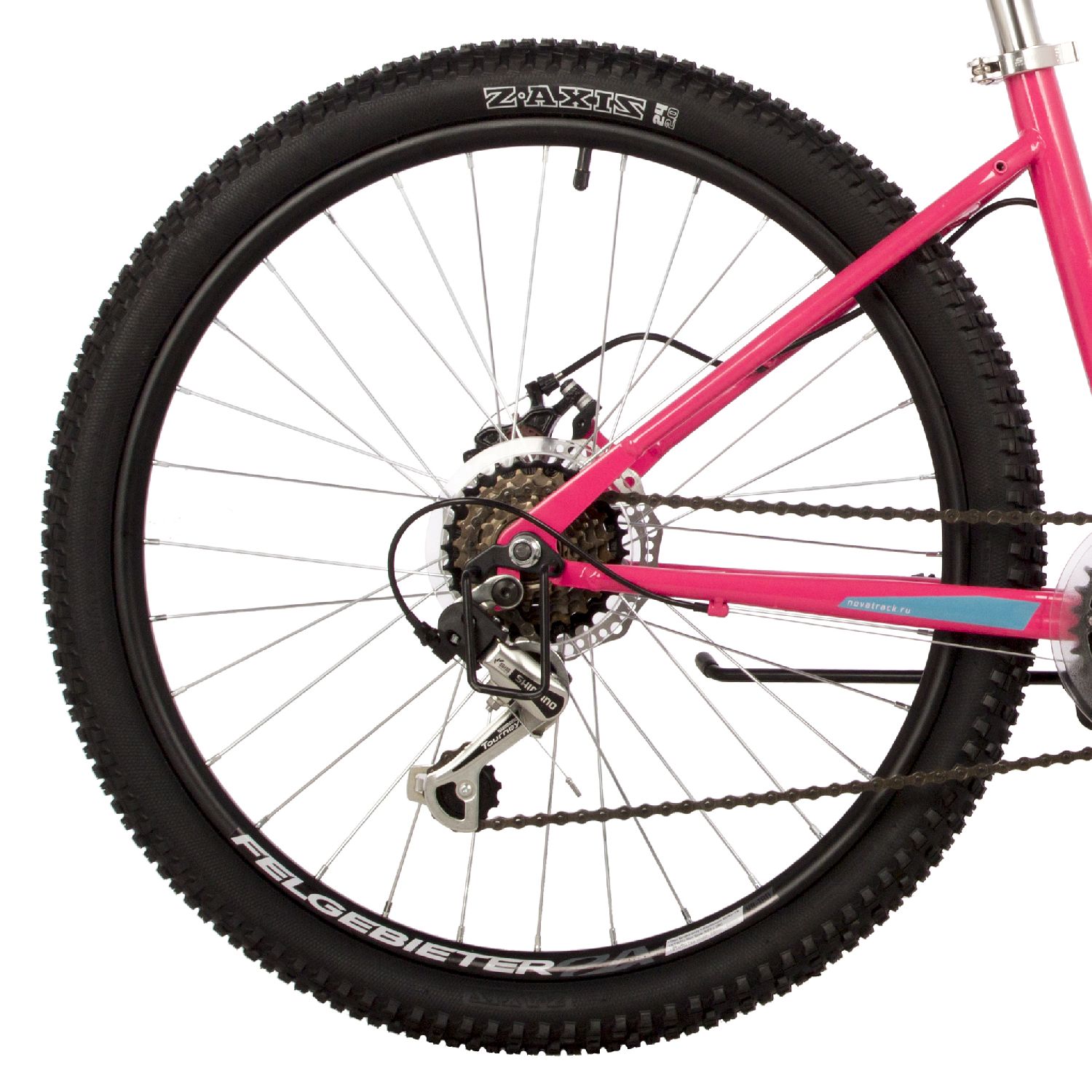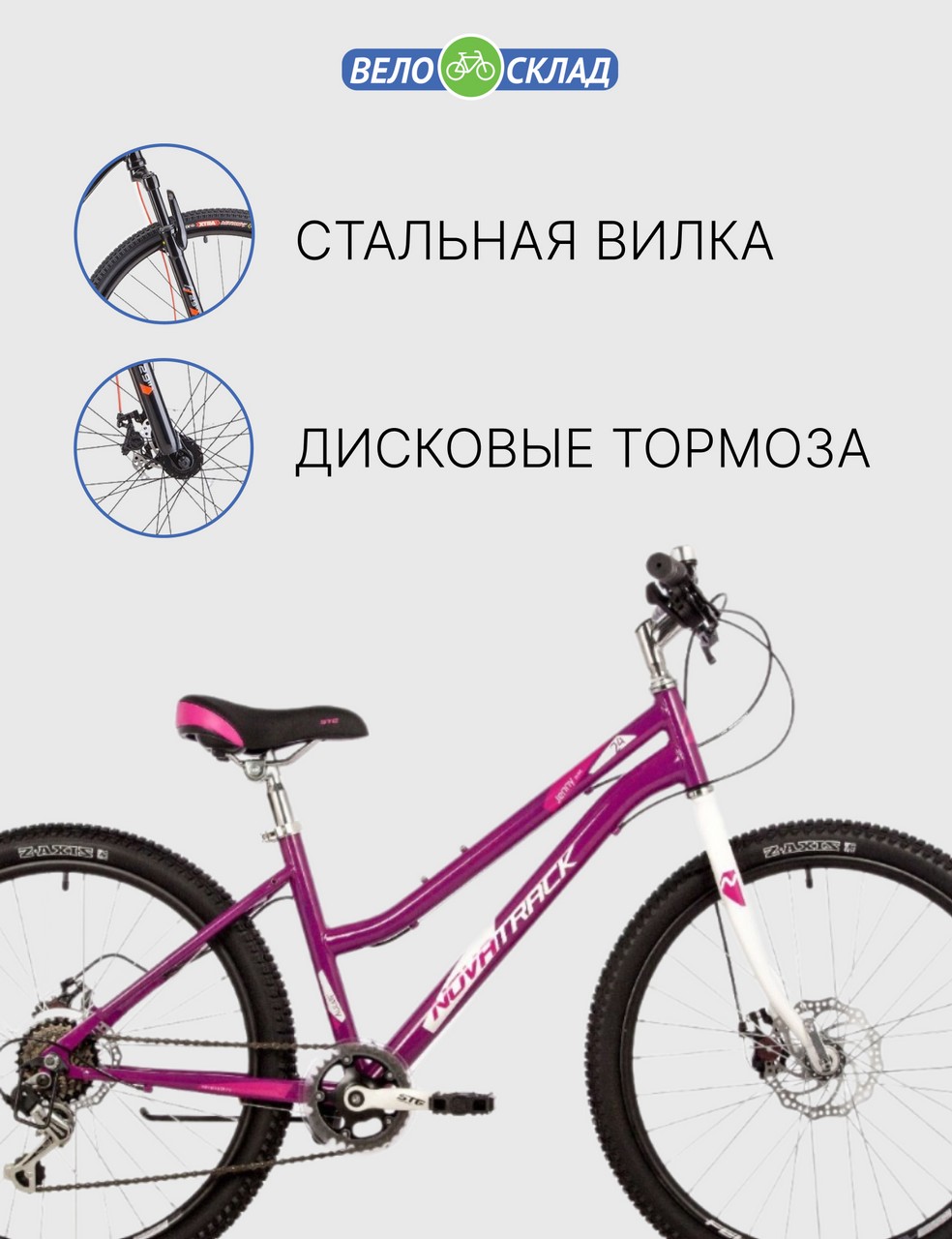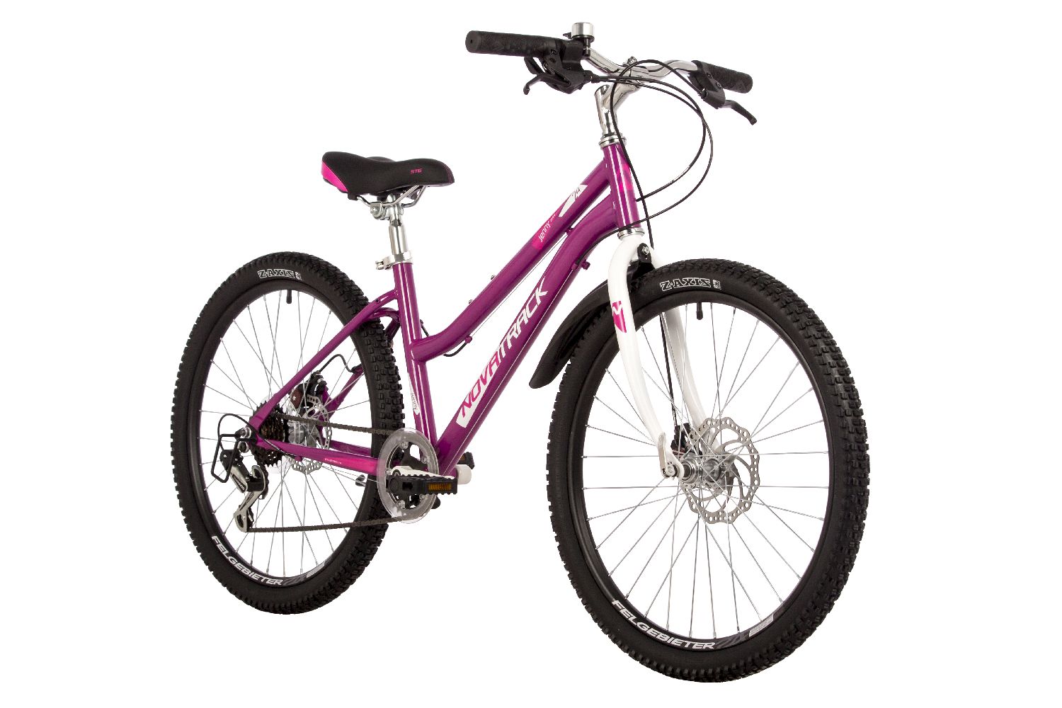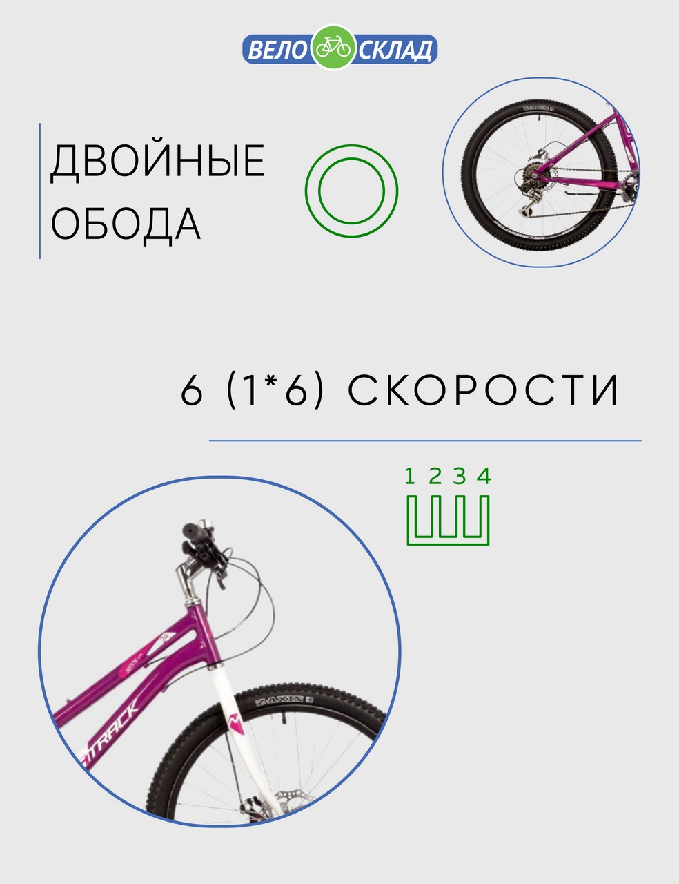 Велосипед, предназначенный для детей в возрасте от восьми до тринадцати лет, с оборудованием начального класса Shimano, 6 скоростей. Технические особенности: стальная рама, жесткая стальная вилка, двойные алюминиевые обода, дисковые механические тормоза STG Disc, защита заднего переключателя, подножка, звонок. Подходит для обучения и прогулочного катания в городских условиях. Диаметр колес - 24 дюйма. Вес - 15 кг.