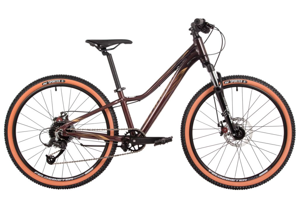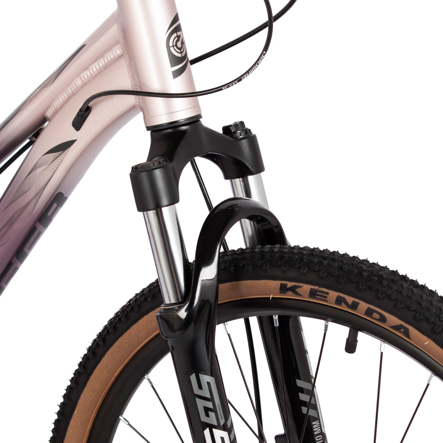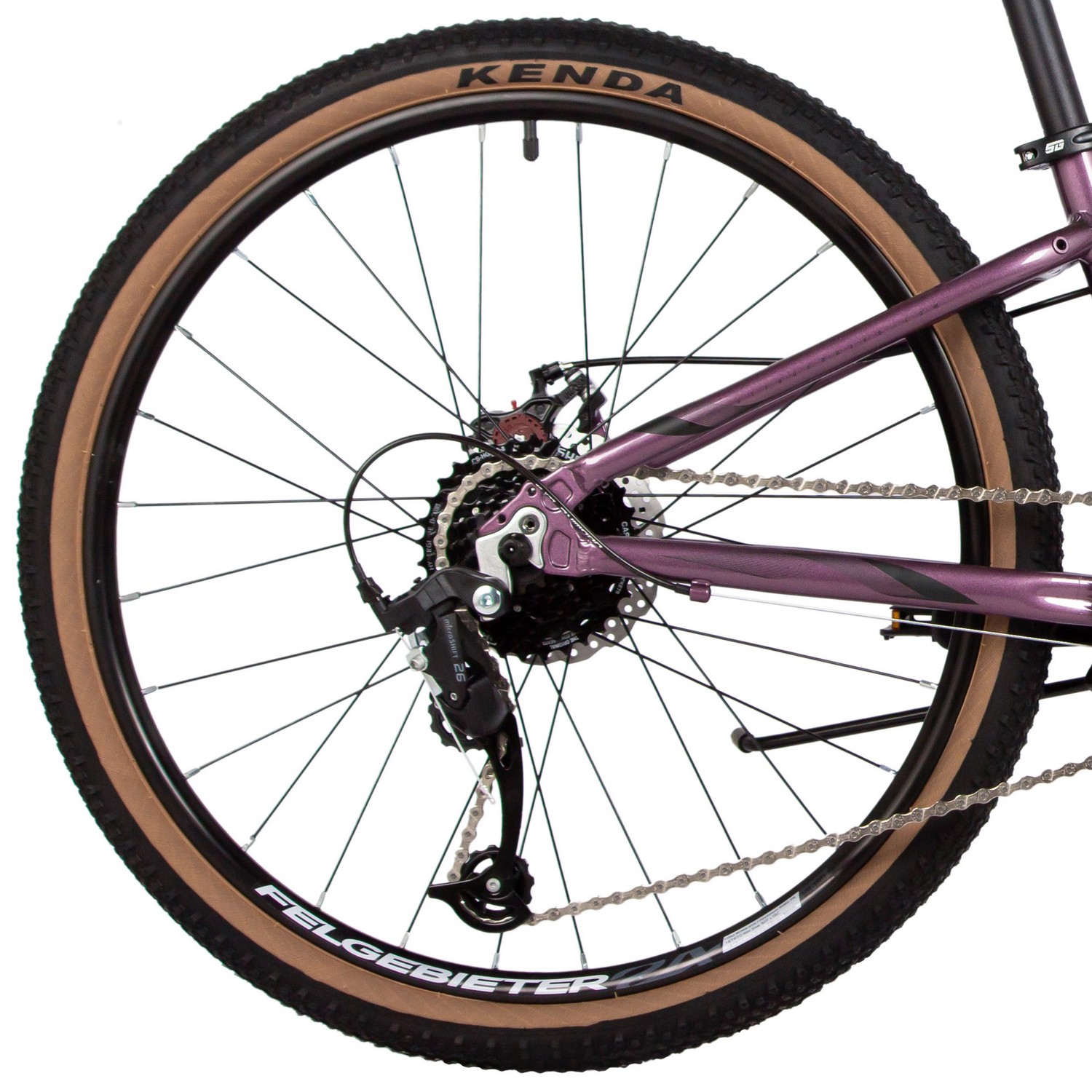 Велосипед, предназначенный для девочек в возрасте от восьми до тринадцати лет, с навесным оборудованием Microshift, 8 скоростей. Технические особенности: легкая алюминиевая рама (сплав 6061, полуинтегрированная рулевая колонка, кареточный стакан BSA, частично скрытая прокладка тросов, съёмный петух), амортизационная вилка STG Spice (пружинная, ход 50 мм), двойные алюминиевые обода Felgebeiter VB-18 (под AV ниппель), дисковые механические тормоза STG (роторы 160/140 мм, крепление на 6 болтов), подножка, катафоты. Подходит для прогулочной езды по различным дорогам и пересеченной местности. Диаметр колес - 24 дюйма. Вес - 14,7 кг.