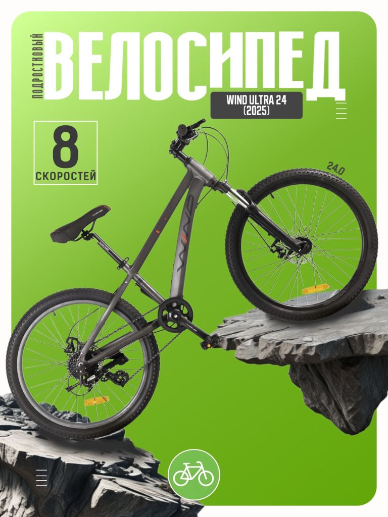 Велосипед, предназначенный для детей в возрасте от восьми до тринадцати лет, с оборудованием начального любительского класса Shimano, 8 скоростей. Технические особенности: легкая алюминиевая рама (сплав 6061, частично скрытая проводка, кареточный стакан BSA, крепление калипера IS, съемный петух, бонки для багажника и флягодержателя), амортизационная вилка (пружинная, ход 50 мм, крепление калипера Post Mount, блокировка, регулировка преднагрузки), двойные алюминиевые обода (под AV ниппель), дисковые механические тормоза (роторы 160/160 мм), защита цепи, подножка, катафоты. Подходит для прогулочного катания в городских условиях и по несложным маршрутам в лесу. Диаметр колес - 24 дюйма. Вес - 12 кг.