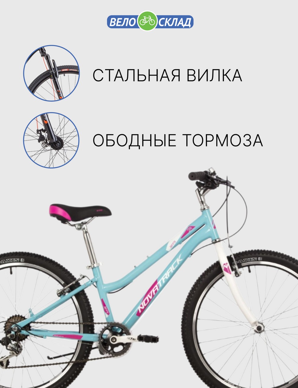 Велосипед, предназначенный для детей в возрасте от восьми до тринадцати лет, с оборудованием начального класса Shimano, 6 скоростей. Технические особенности: стальная рама, жесткая стальная вилка, двойные алюминиевые обода, надёжные ободные тормоза V-brake, защита заднего переключателя, подножка, звонок. Подходит для обучения и прогулочного катания в городских условиях. Диаметр колес - 24 дюйма. Вес - 14,3 кг.