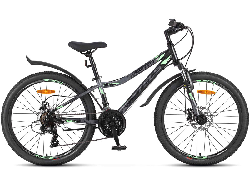 Подростковый велосипед с оборудованием начального класса Shimano, 21 скорость. Технические особенности: прочная стальная рама (открытая проводка, кареточный стакан BSA, прямой рулевой стакан, крепление калипера IS), амортизационная вилка Zoom (ход 50 мм, крепление калипера IS), двойные алюминиевые обода (под AV ниппель), дисковые механические тормоза (роторы 160/160 мм), защита заднего переключателя, катафоты, подножка, звонок. Подходит для прогулочной езды по ровным дорогам и по несложной пересеченной местности. Диаметр колес - 24 дюйма. Вес - 16,44 кг.