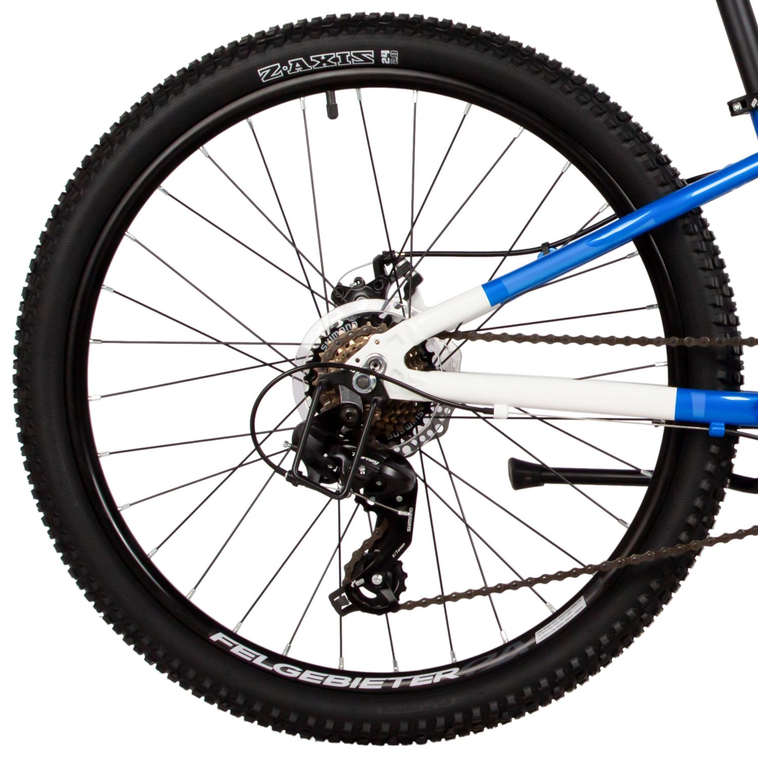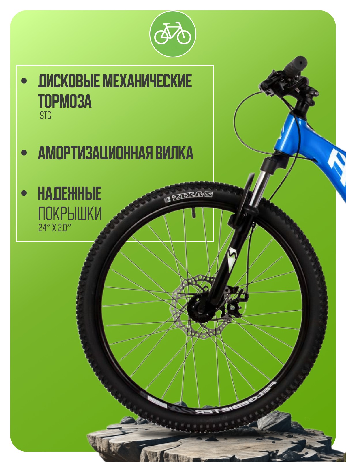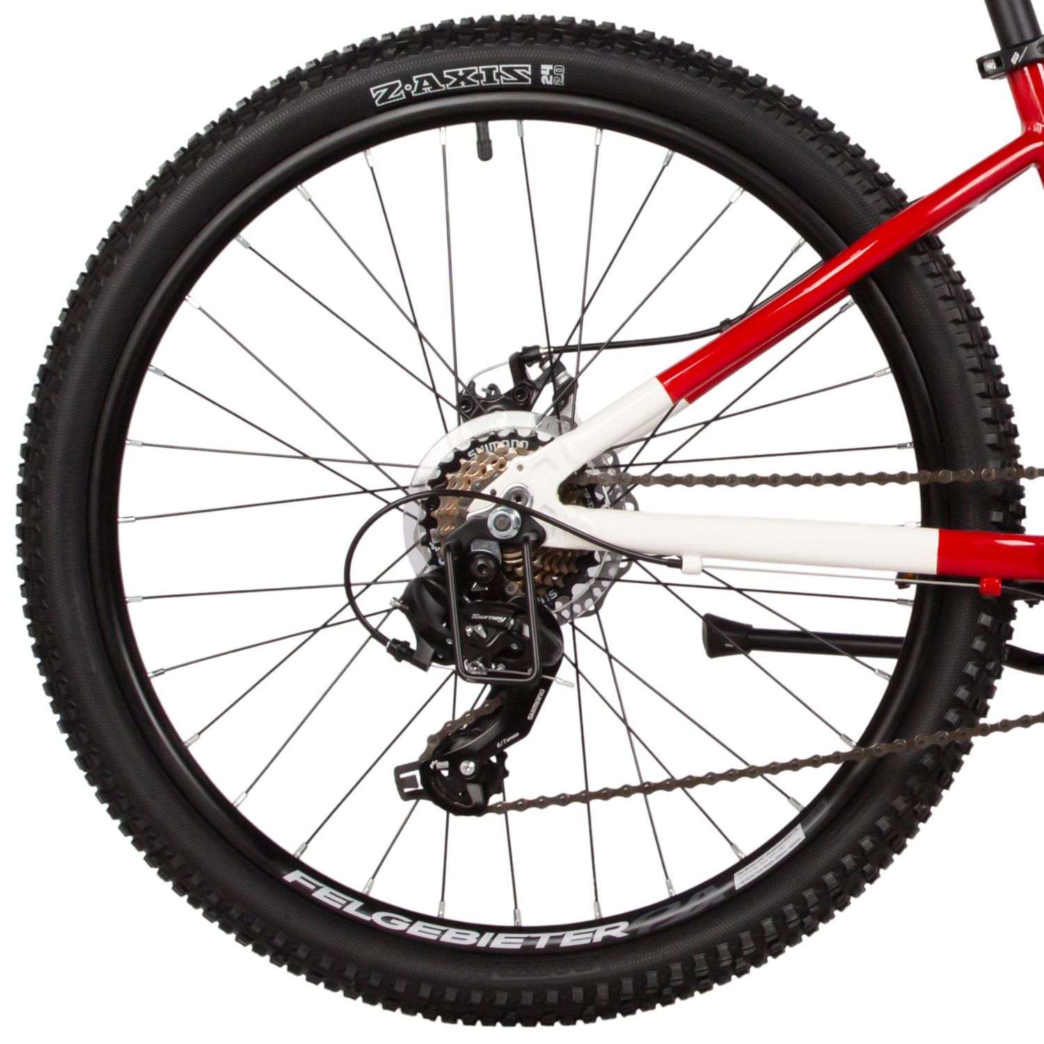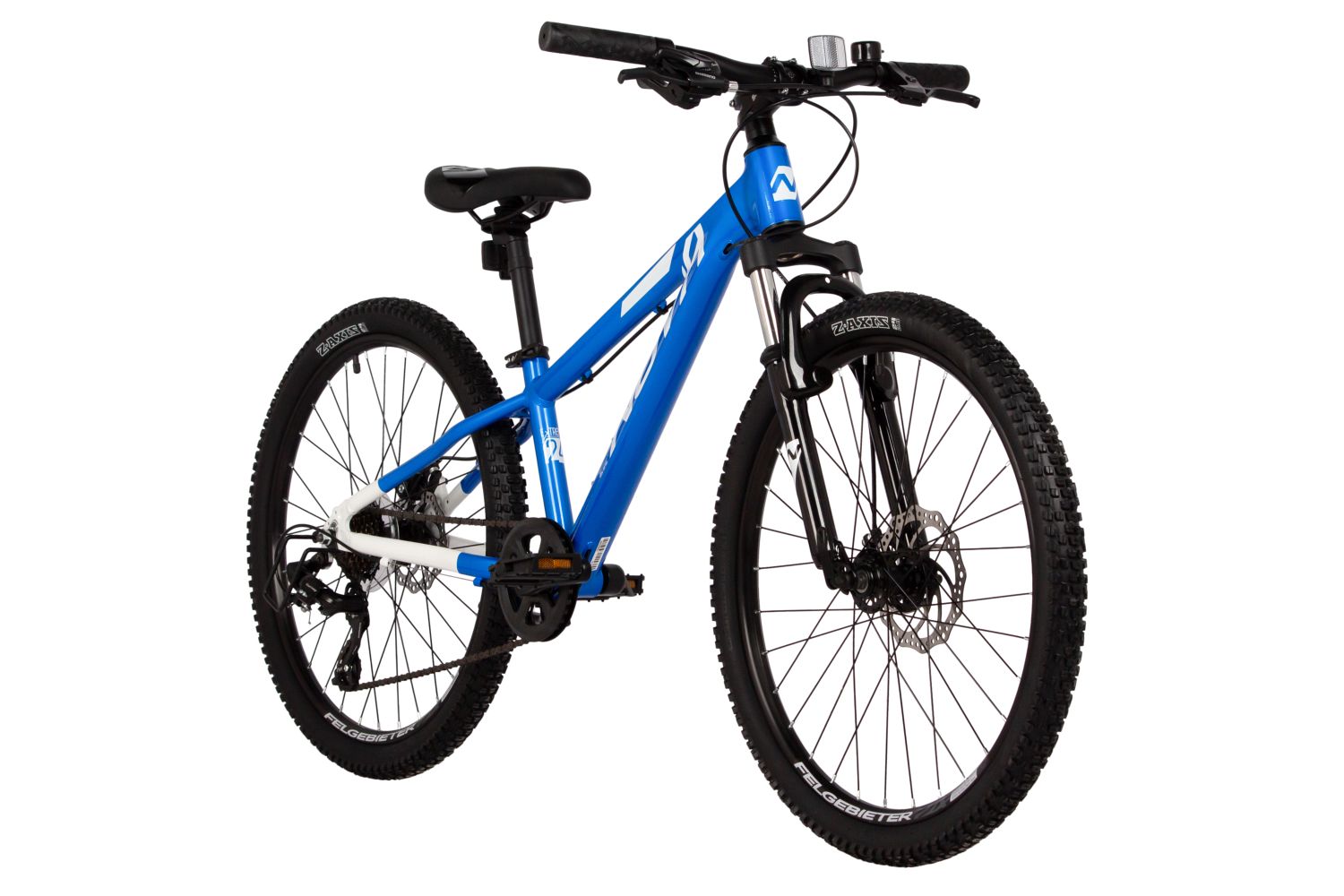 Велосипед, предназначенный для мальчиков в возрасте от восьми до тринадцати лет, с навесным оборудованием Shimano, 7 скоростей. Технические особенности: легкая алюминиевая рама (сплав 6061, сглаженные швы, полуинтегрированная рулевая колонка, кареточный стакан BSA, частично скрытая прокладка тросов, съёмный петух), амортизационная вилка Novatrack (пружинно-эластомерная, хромированные ноги, ход 40 мм, дропауты 10 мм), двойные алюминиевые обода (под ниппель A/V), дисковые механические тормоза STG (роторы 160/140 мм), защита цепи, защита заднего переключателя, подножка, звонок, катафоты. Подходит для прогулочного катания в городских условиях и по несложным маршрутам в лесу. Диаметр колес - 24 дюйма. Вес - 13,7 кг.