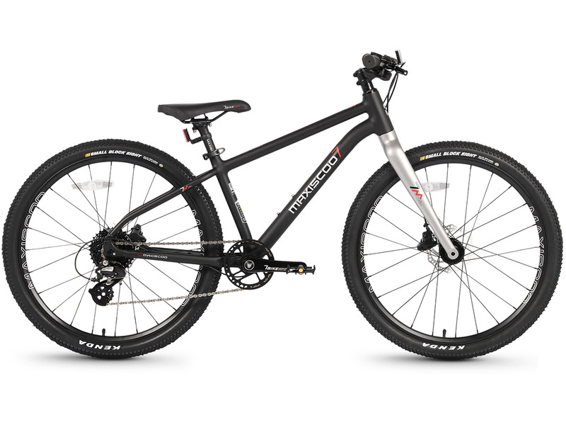 Велосипед, предназначенный для детей в возрасте от восьми до тринадцати лет, с навесным оборудованием Shimano, 8 скоростей. Технические особенности: легкая алюминиевая рама (сплав 6061, гидроформинг, баттинг, сглаженные швы, скрытая проводка, прямой рулевой стакан, кареточный стакан BSA, крепление калипера Flat Mount, дропауты под сквозную ось), жесткая алюминиевая вилка (скрытая проводка, крепление калипера Flat Mount), двойные алюминиевые обода (под ниппель AV), дисковые гидравлические тормоза (роторы 140/140 мм), защита цепи, катафоты. Максимальная нагрузка - до 50 кг. Подходит для прогулочного катания в городских условиях и по несложным маршрутам в лесу. Диаметр колес - 24 дюйма. Вес - 9,5 кг.