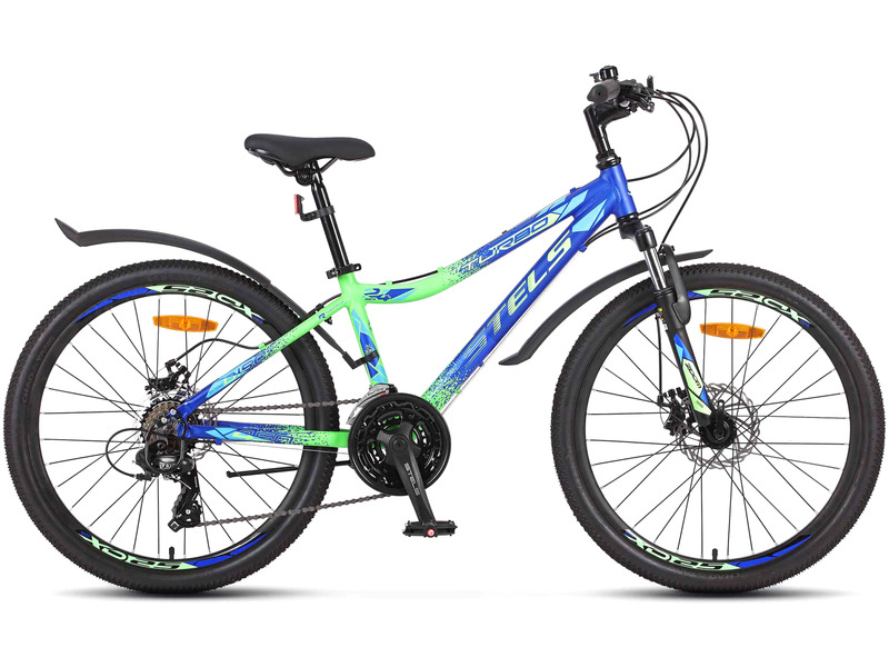 Подростковый велосипед с оборудованием начального класса Shimano, 21 скорость. Технические особенности: алюминиевая рама (открытая проводка, кареточный стакан BSA, прямой рулевой стакан, крепление калипера IS, съемный петух), амортизационная вилка Zoom (ход 50 мм, крепление калипера IS), двойные алюминиевые обода (под AV ниппель), дисковые механические тормоза (роторы 160/160 мм), защита заднего переключателя, катафоты, подножка, звонок. Подходит для прогулочной езды по ровным дорогам и по несложной пересеченной местности. Диаметр колес - 24 дюйма. Вес - 15,4 кг.