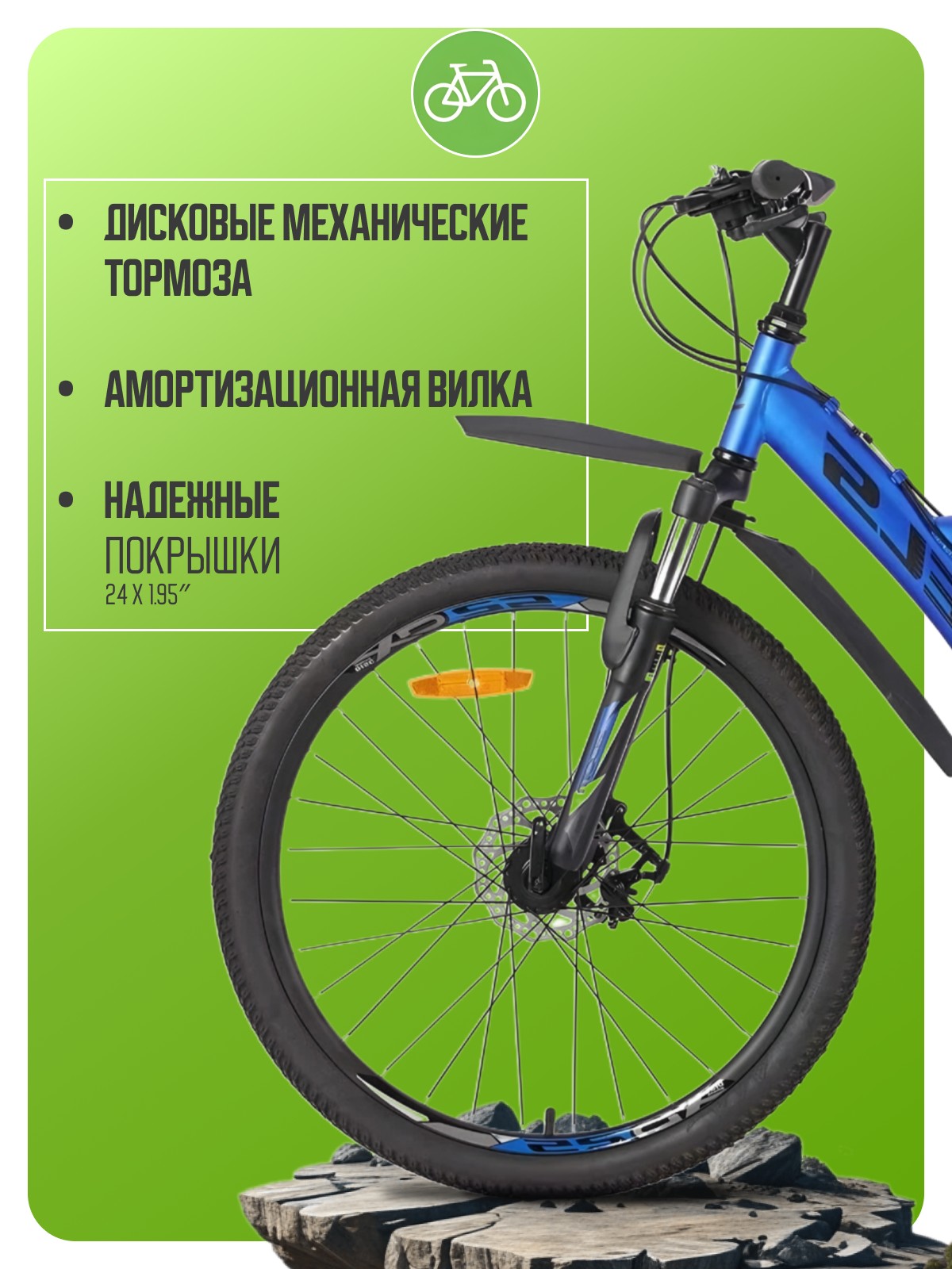 Подростковый двухподвес с оборудованием начального класса Shimano, 21 скорость. Технические особенности: прочная стальная рама (полноподвесная, открытая прокладка тросов, кареточный стакан BSA, крепление калипера IS), амортизационная вилка Zoom (ход 50 мм, крепление калипера IS), задний амортизатор, двойные алюминиевые обода (под AV ниппель), дисковые механические тормоза (роторы 160/160 мм), защита цепи, пластиковые крылья, подножка, катафоты. Подходит для прогулочной езды по различным дорогам и пересеченной местности. Диаметр колес - 24 дюйма. Вес - 17,7 кг.