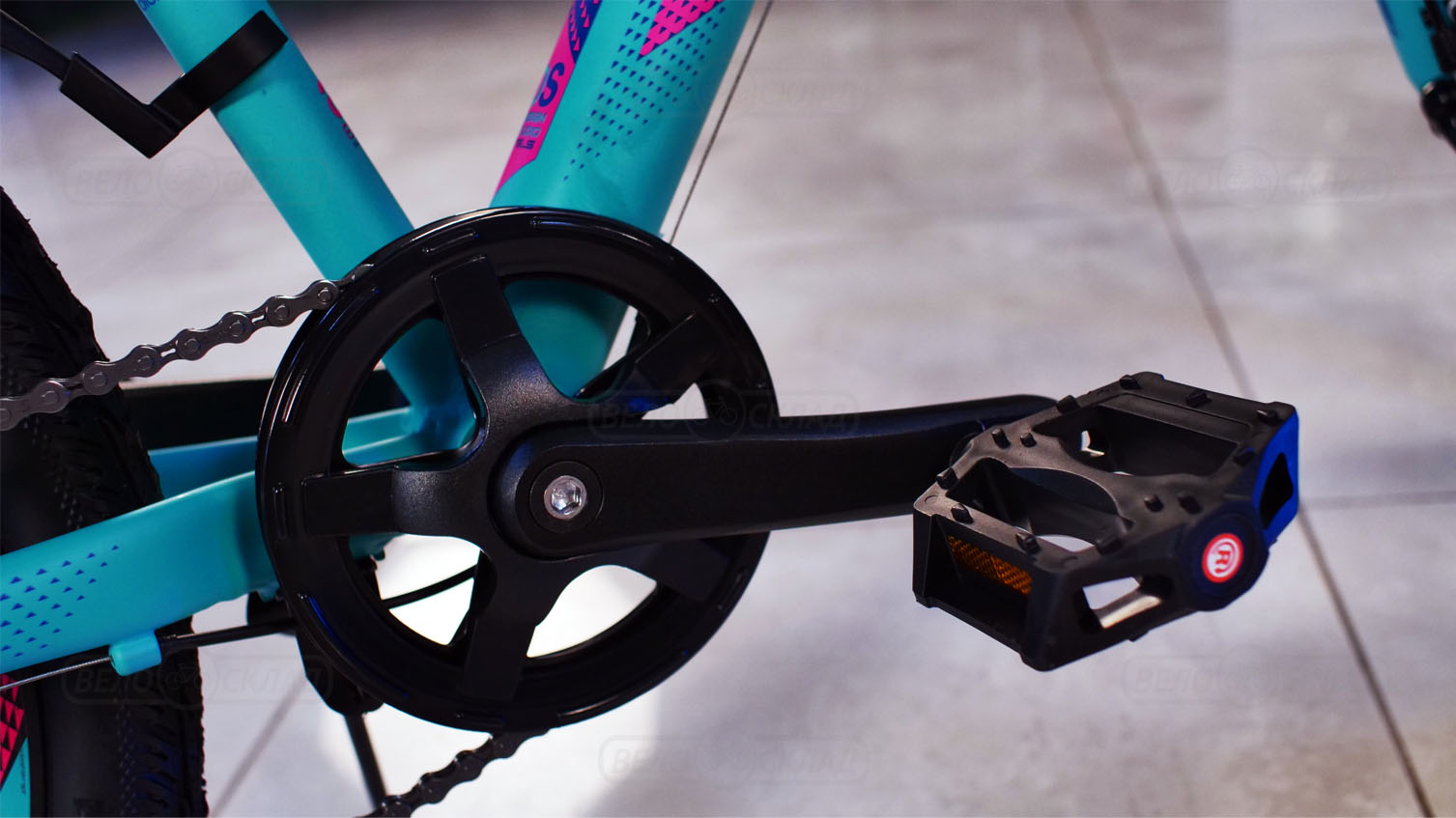 Особенности велосипеда: Алюминиевая рама, Амортизационная вилка, Двойные обода, Дисковые тормоза, Защита цепи, Звонок, Катафоты, Многоскоростной, Подножка.