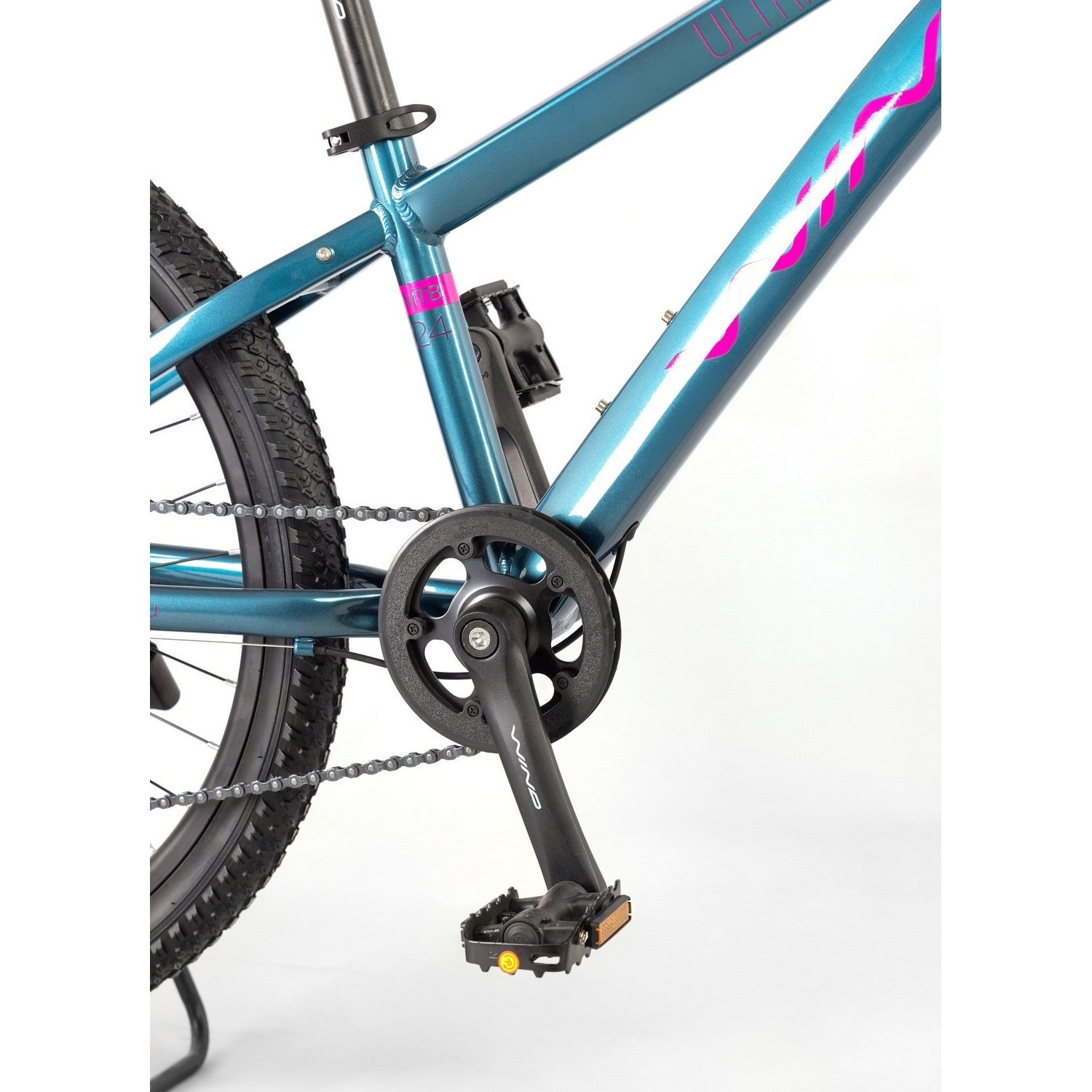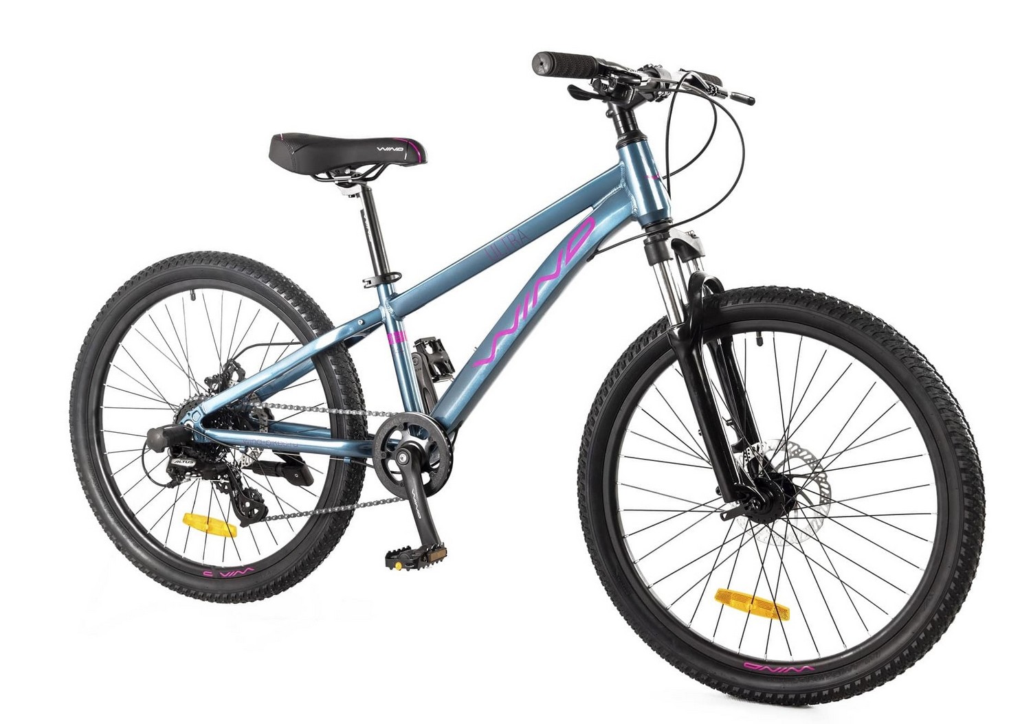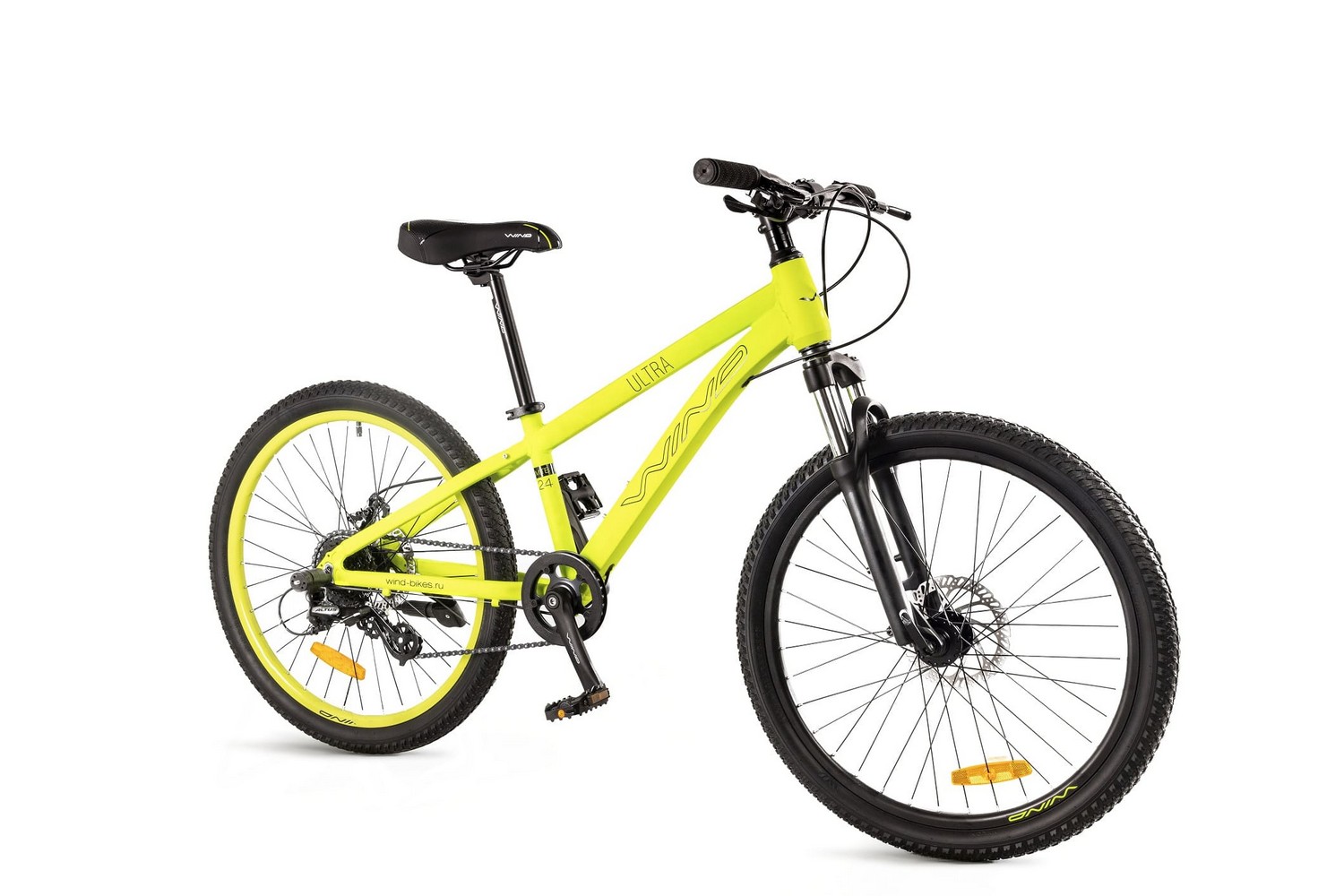 Велосипед, предназначенный для детей в возрасте от восьми до тринадцати лет, с оборудованием начального любительского класса Shimano, 8 скоростей. Технические особенности: легкая алюминиевая рама (сплав 6061, частично скрытая проводка, кареточный стакан BSA, крепление калипера IS, съемный петух, бонки для багажника и флягодержателя), амортизационная вилка (пружинная, ход 50 мм, крепление калипера Post Mount, блокировка, регулировка преднагрузки), двойные алюминиевые обода (под AV ниппель), дисковые механические тормоза (роторы 160/160 мм), защита цепи, подножка, катафоты. Подходит для прогулочного катания в городских условиях и по несложным маршрутам в лесу. Диаметр колес - 24 дюйма. Вес - 12 кг.