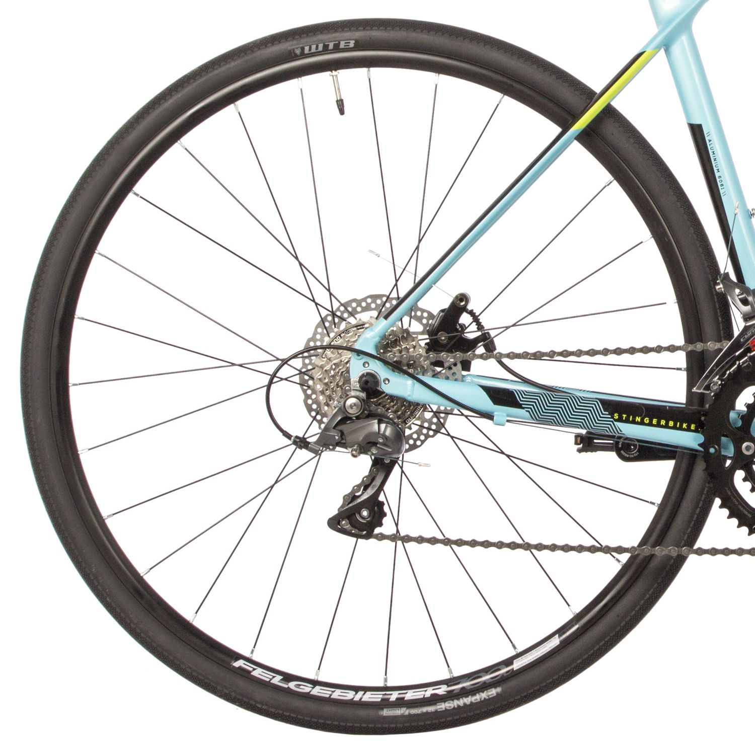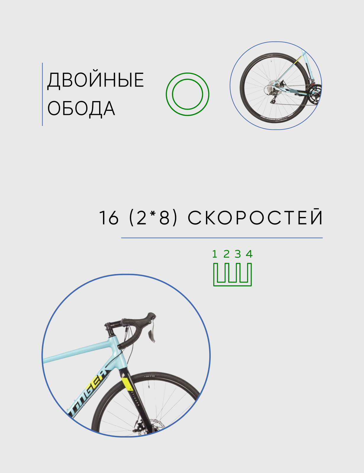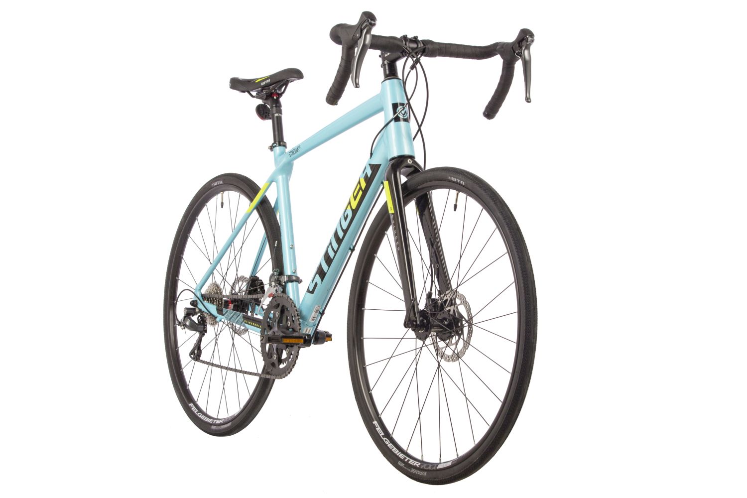 Шоссейный велосипед с оборудованием любительского класса Shimano, 16 скоростей. Технические особенности: алюминиевая рама 6061-T6, жесткая карбоновая вилка, двойные обода Felgebeiter VB-18, дисковые механические тормоза YAK Dualever. Подходит для быстрой спортивной езды по шоссе. Диаметр колес - 28 дюймов. Вес - 12,2 кг.