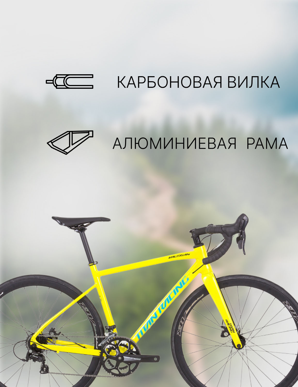 Шоссейный велосипед c оборудованием начального любительского класса Microshift, 16 скоростей. Технические особенности: алюминиевая рама Valerian Road Alloy Disc, жесткая карбоновая вилка Carbon Road F61 Disc, двойные обода Prime AR 35, дисковые механические тормоза Tektro MD-C400 Disc. Подходит для быстрой спортивной езды по шоссе и участия в гонках. Диаметр колес - 28 дюймов. Вес - 11 кг.
