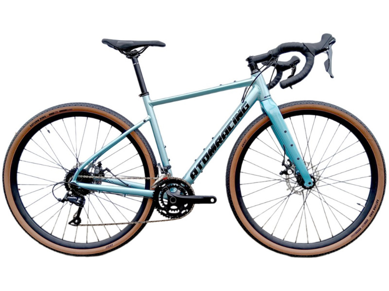 Гравийный велосипед с оборудованием любительского класса Shimano, 18 скоростей. Технические особенности: алюминиевая рама ATOM Gravel (сплав AL6069, конический рулевой стакан, тройной баттинг, внутренняя проводка, дропауты под полую ось), жесткая карбоновая вилка ATOM Tundra Carbon Disc (скрытая проводка, дропауты под полую ось), двойные обода ATOM X24 (подходят для бекамерного использования, внутренняя ширина 21 мм, высота профиля 25 мм, под ниппель Presta), дисковые механические тормоза Promax DCK-330R (роторы Tektro TR-24 160/160 мм). Подходит для активной езды по различным дорогам и пересеченной местности. Диаметр колес - 28 дюймов. Вес - 10,6 кг.