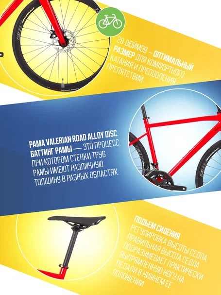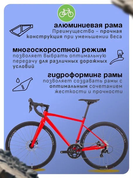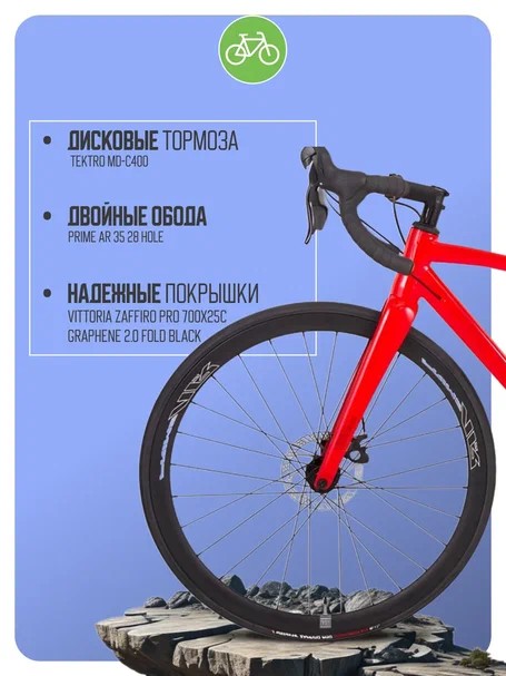 Шоссейный велосипед продвинутого уровня c оборудованием высшего любительского класса Microshift, 20 скоростей. Технические особенности: алюминиевая рама Valerian Road Alloy Disc, жесткая карбоновая вилка Carbon Road F61 Disc, двойные обода Prime AR 35, дисковые механические тормоза Tektro MD-C400 Disc. Подходит для быстрой спортивной езды по шоссе и участия в гонках. Диаметр колес - 28 дюймов. Вес - 11 кг.