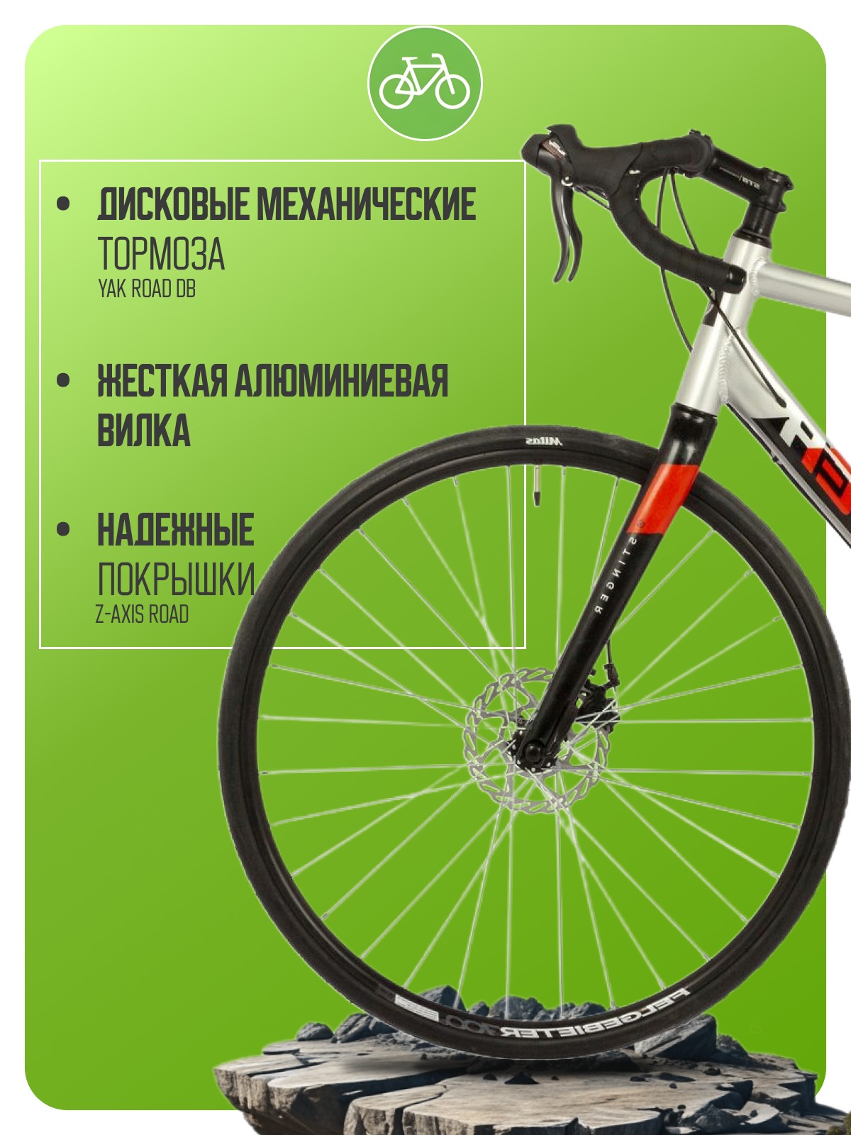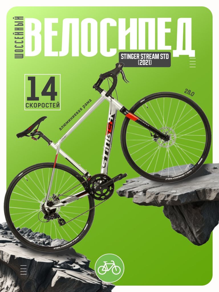 Шоссейный велосипед начального уровня с навесным оборудованием Shimano, 14 скоростей. Технические особенности: алюминиевая рама 6061, жесткая алюминиевая вилка, двойные обода Felgebeiter VB18, дисковые механические тормоза YAK Road DB. Подходит для быстрой спортивной езды по шоссе. Диаметр колес - 28 дюймов. Вес - 12,6 кг.