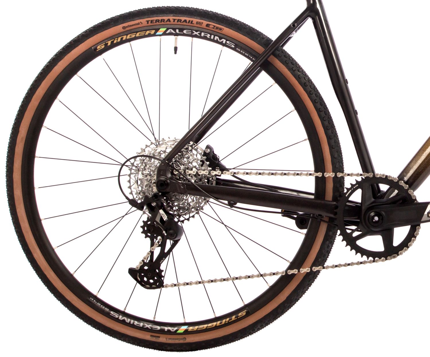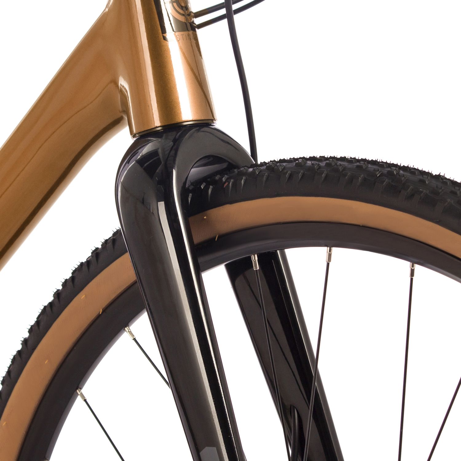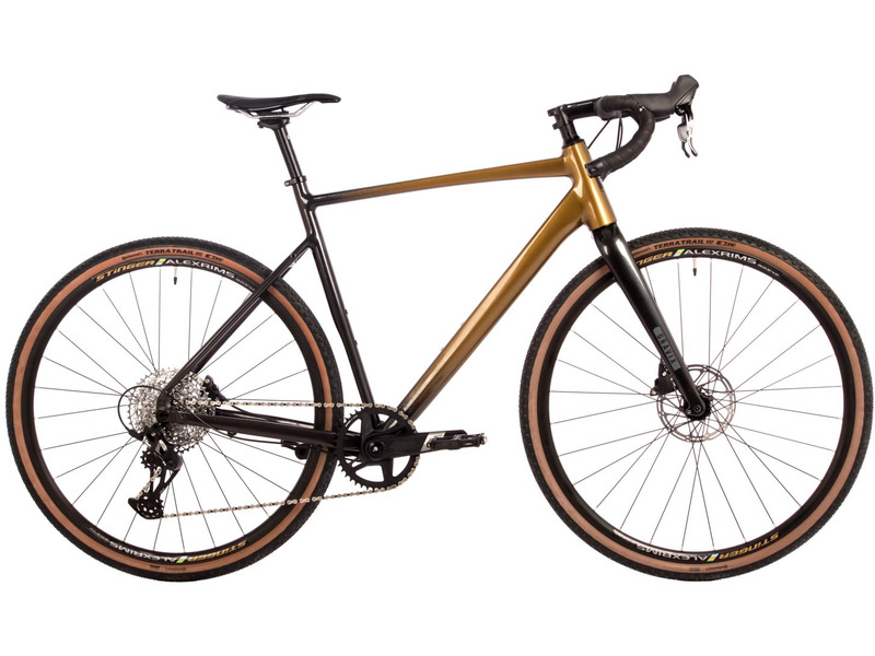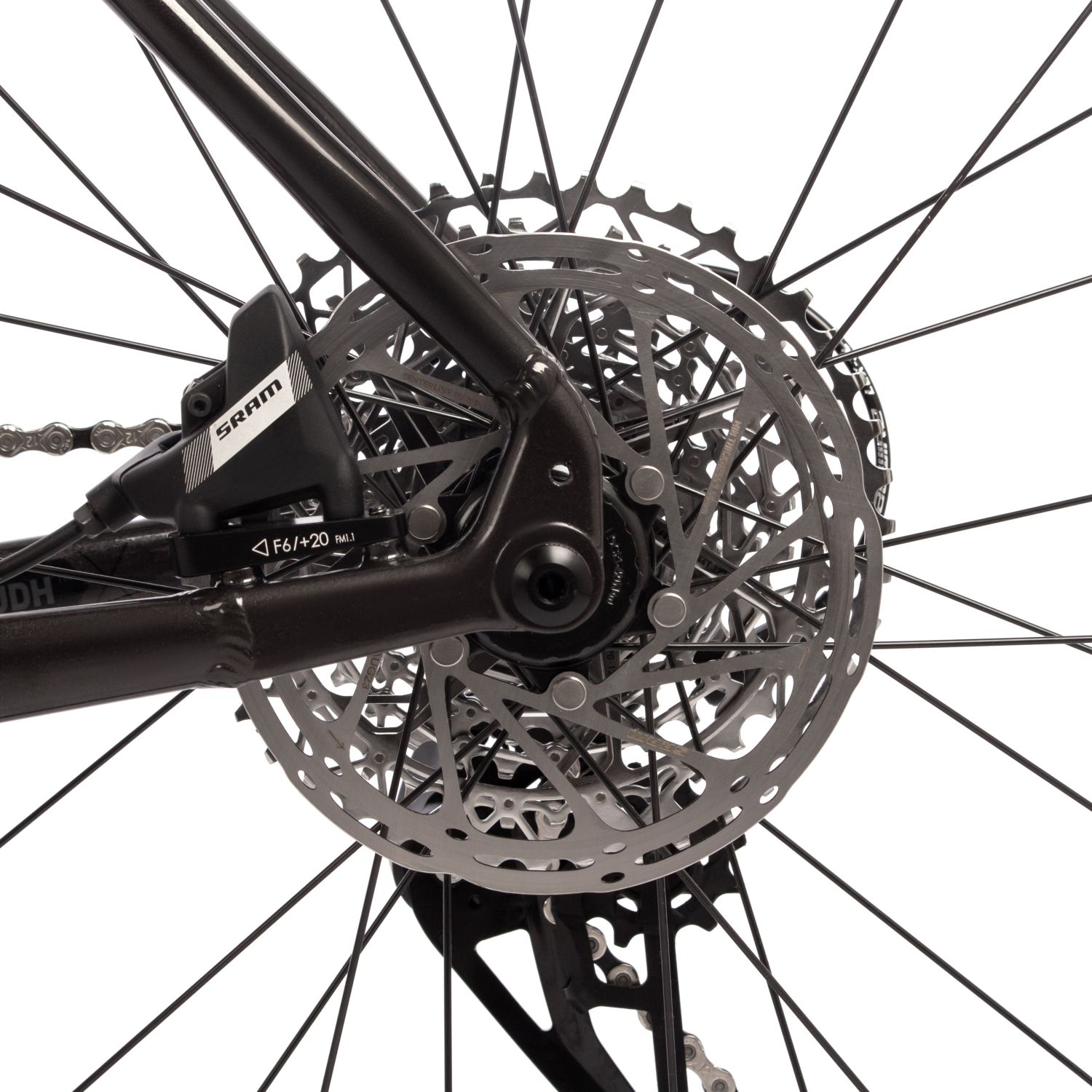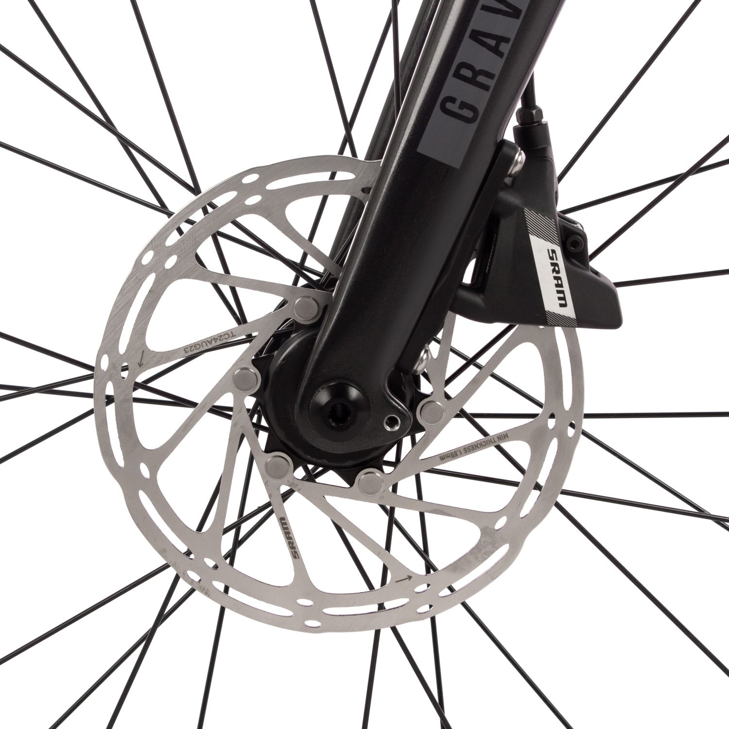 Гравийный велосипед с оборудованием предпрофессионального класса SRAM, 12 скоростей. Технические особенности: алюминиевая рама (гидроформинг, двойной баттинг, полированные швы, конусный рулевой стакан ZS, кареточный стакан BSA, крепление калипера внутри перьев FM, съемный петух, скрытая прокладка тросов, проушины, крепления и бонки для аксессуаров, UDH дропауты на оси 12х142 мм), жесткая карбоновая вилка (скрытая прокладка троса, дропауты под ось 12х100 мм, крепление калипера PM), двойные алюминиевые обода Alexrims GD24P (под FV ниппель, совместимы с бескамерной резиной), дисковые гидравлические тормоза Sram Apex (роторы 160/160 мм). Подходит для активной езды по различным дорогам и пересеченной местности. Диаметр колес - 28 дюймов. Вес - 11,5 кг.