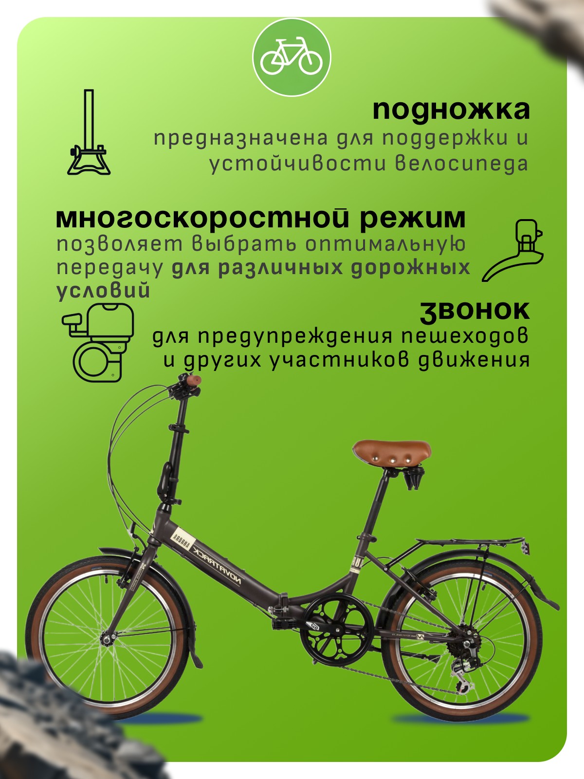 Особенности велосипеда: Багажник, Двойные обода, Защита цепи, Звонок, Катафоты, Крылья, Многоскоростной, Подножка, Широкое седло.