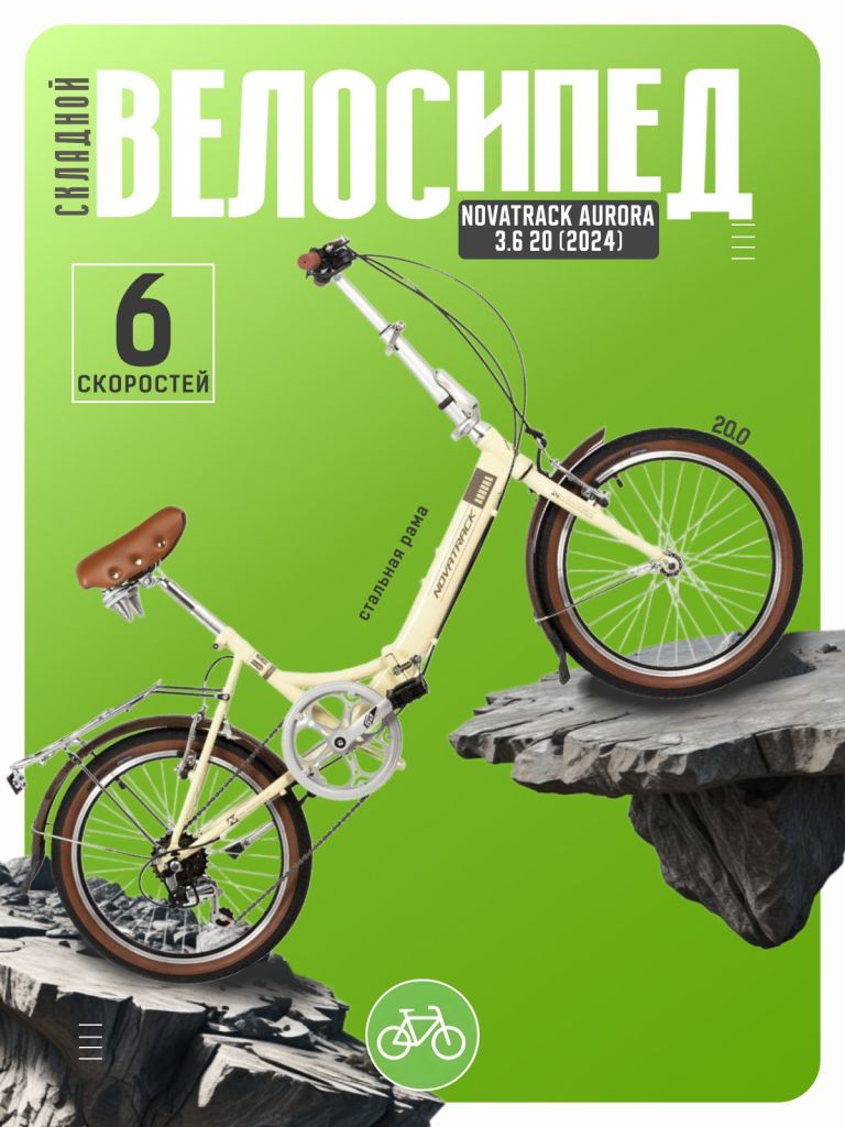 Складной велосипед с оборудованием начального класса Shimano, 6 скоростей. Технические особенности: складная стальная рама, жесткая стальная вилка, двойные алюминиевые обода, надежные ободные тормоза Sparkle V-brake, длинные крылья, комфортное седло, багажник, звонок, подножка. Подходит для прогулочного катания в городских условиях. Диаметр колес - 20 дюймов. Вес - 14,5 кг.