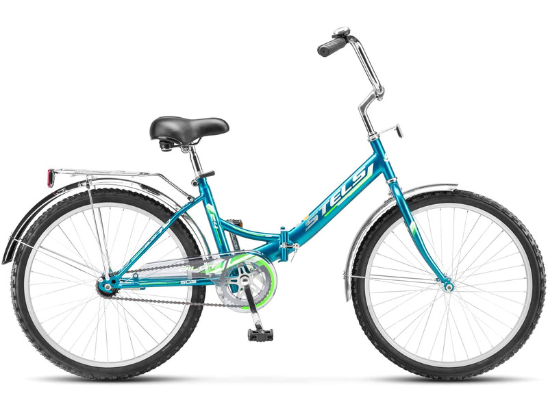Складной прогулочный велосипед без переключения передач. Технические особенности: прочная стальная рама, жесткая стальная вилка, одинарные алюминиевые обода (под AV ниппель), ножной педальный тормоз, пластиковая защита цепи, длинные крылья из нержавеющей стали, задний багажник, катафоты, подножка, звонок. Подходит для прогулочной езды по шоссе и ровным проселочным дорогам. Диаметр колес - 24 дюйма. Вес - 17,6 кг.