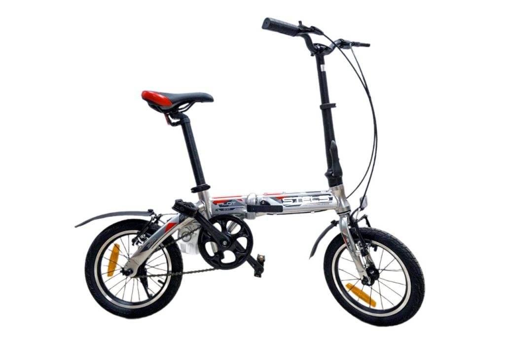 Складной компактный велосипед для катания в городской среде, без переключения передач. Технические особенности: легкая алюминиевая рама (сплав Х6, рулевой стакан ZS, кареточный стакан BSA, прямой дропаут, усиливающие косынки, открытая прокладка тросов), жесткая стальная вилка (безрезьбовой шток), двойные алюминиевые обода (под AV ниппель), надежные ободные тормоза V-Brake (алюминиевые рычаги), защита цепи, подножка, складная рулевая стойка, складные педали, катафоты. Подходит для прогулочного катания в городских условиях. Диаметр колес - 14 дюймов. Вес - 9,54 кг.