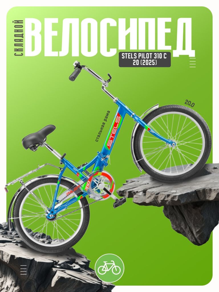 Складной прогулочный велосипед без переключения передач. Технические особенности: прочная стальная рама (складной механизм на эксцентрике, интегрированный подседельный хомут), жесткая стальная вилка (резьбовой шток), одинарные алюминиевые обода (под AV ниппель), ножные педальные тормоза, пластиковая защита цепи, длинные крылья, задний багажник, комфортное седло с эластомерами, подножка, катафоты, звонок. Подходит для прогулочного катания в городских условиях. Диаметр колес - 20 дюймов. Вес - 14,12 кг.