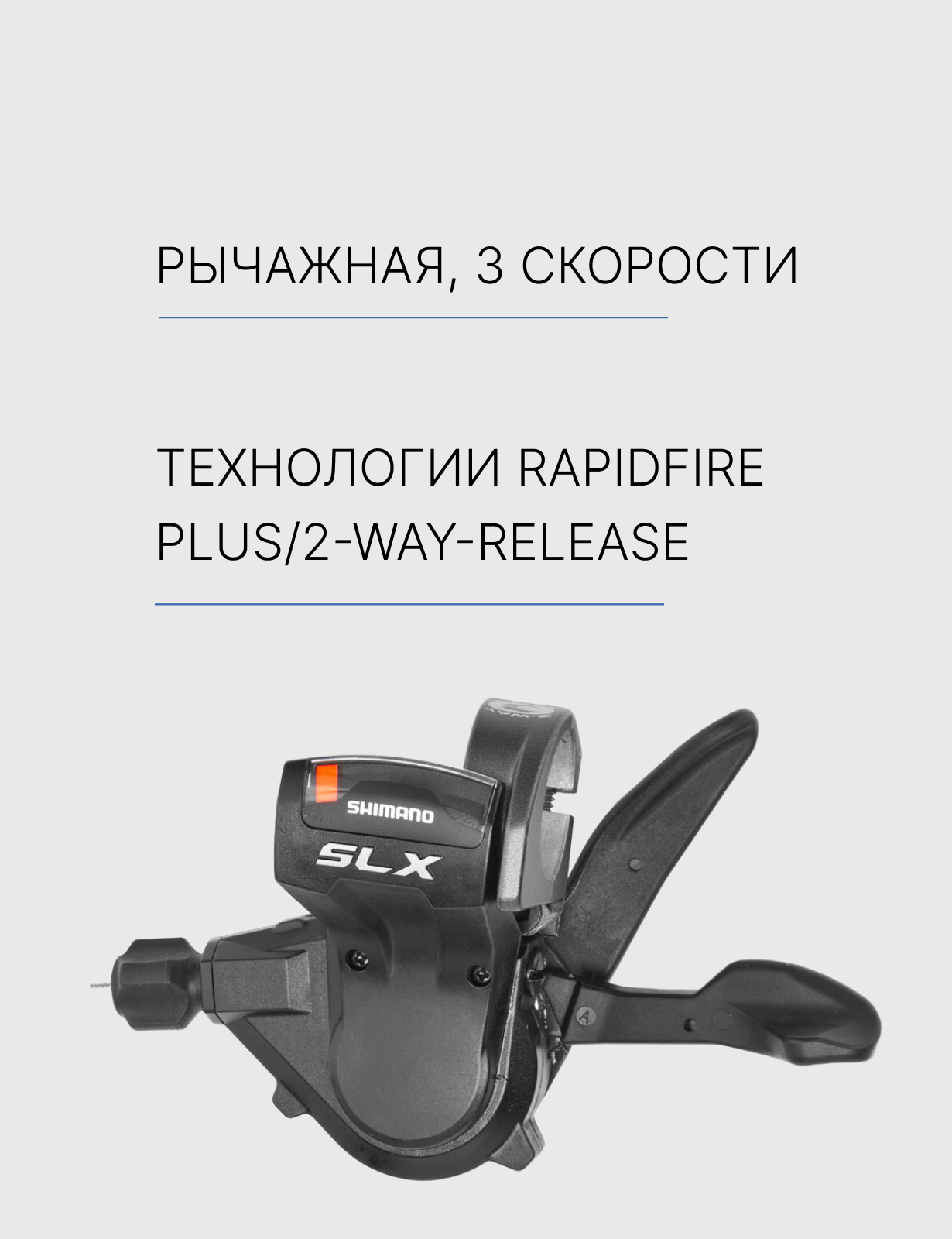 Особенности:Рычажная, 3 скорости, технологии Rapidfire Plus/2-Way-Release