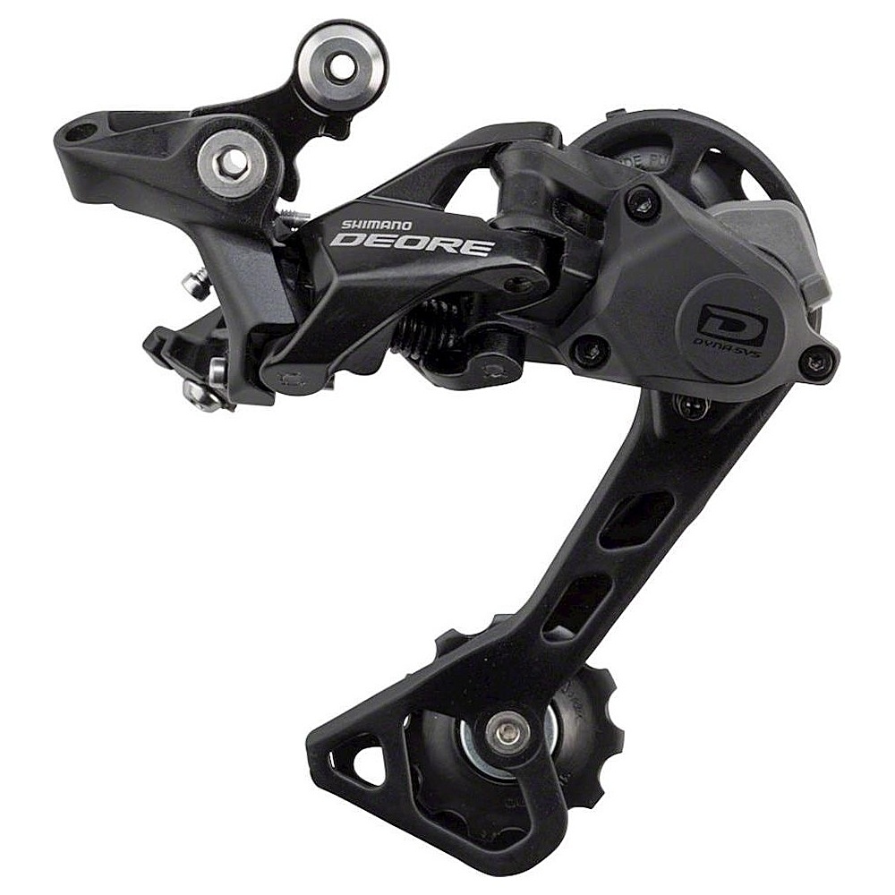 Shimano Deore M6000 - задний переключатель, разработанный для горных велосипедов полупрофессионального уровня и для активного катания в стиле кросс-кантри. Подходит для трансмиссий 2x10 передач и только для кассет 11-42T. Комплектуется лапкой средней длины GS. Технология Dyna-SYS оптимизирует процесс переключения передач, делая работу трансмиссии более эффективной и долговечной. Технология Shadow+ снижает колебания цепи при активном катании по пересеченной местности и позволяет легко переключаться на скорости. Совместимая цепь: HG-X 10-speed. Емкость трансмиссии: 41T. Вес - 331 грамм.