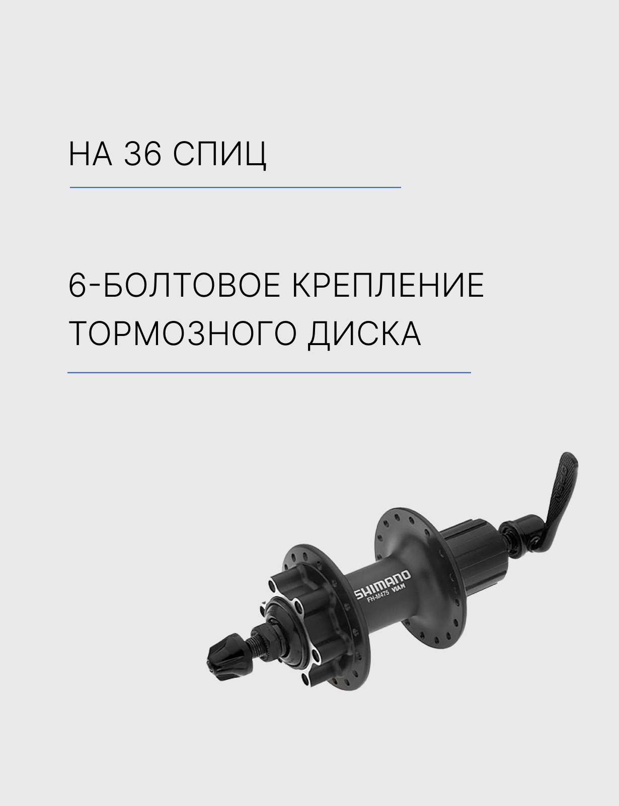 Задняя втулка Shimano M475 черного цвета с 36 отверстиями под спицы. Предназначена для 8-9 скоростных кассет. Имеет ось длиной около 166 мм с эксцентриком для быстрого и легкого снятия колеса и его монтажа. Комплект включает 6-болт.
