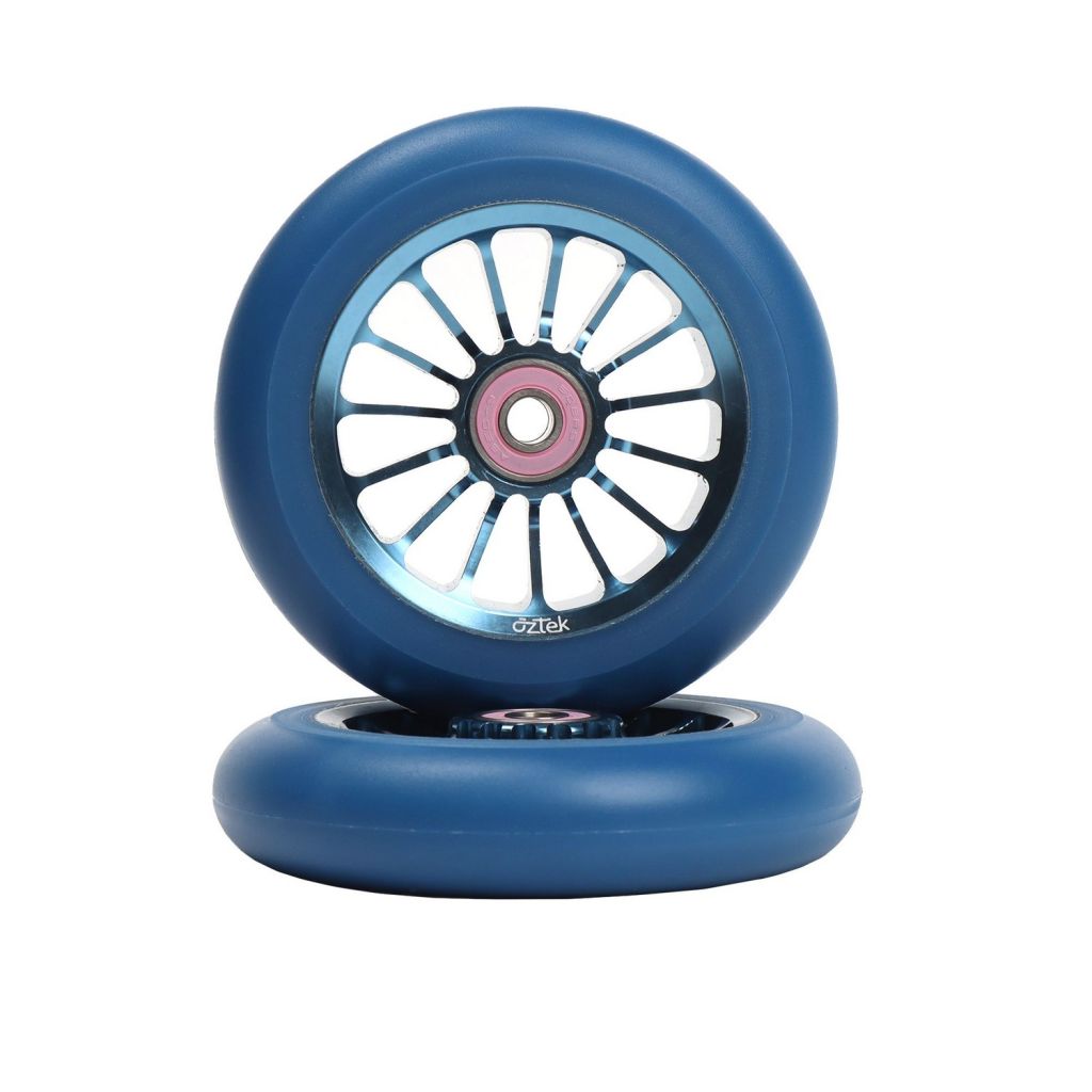 Колёса Aztek Architect 2 — отличный комплект из двух колёс, разработанный для трюковых самокатов Aztek и моделей от других популярных брендов. Благодаря алюминиевым дискам с 15 спицами обеспечивается отличная жёсткость и устойчивость при выполнении прыжков и сложных манёвров. Колёса оснащены высокоскоростными подшипниками ABEC 9, что гарантирует плавный и быстрый накат. Полиуретан жёсткостью 88А устойчив к истиранию и имеет хорошее сцепление с асфальтом. Диаметр колеса — 110 мм, ширина — 24 мм, вес пары — около 450 г, что обеспечивает отличный баланс между манёвренностью и стабильностью.