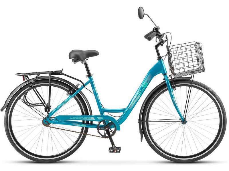 Женский дорожный велосипед для катания в городской среде без переключения передач. Технические особенности: легкая алюминиевая рама, жесткая стальная вилка, двойные алюминиевые обода (под AV ниппель), ножные педальные тормоза, защита цепи, длинные крылья, задний багажник, комфортное седло, передняя корзина, катафоты, звонок. Подходит для прогулочного катания в городских условиях и по ровному грунту. Диаметр колес - 28 дюймов. Вес - 16,5 кг.